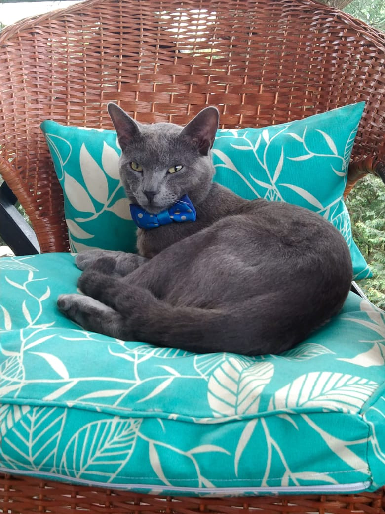 ✅ Raza: Cruzado con Ruso Azul.