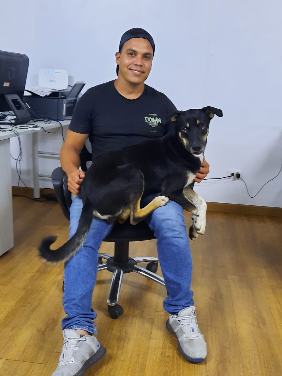 ✅ Es un perrito de color de pelo negro y liso (no tan abundante), por debajo del cuello es como beige, las patas delanteras son del mismo color, pero en un tono más claro, las traseras son como de un tonito más amarillo. Es muy activo, juguetón, pesa 18 kilos, contextura atlética, como 60 centímetros de alto por 80 de largo (aproximadamente).