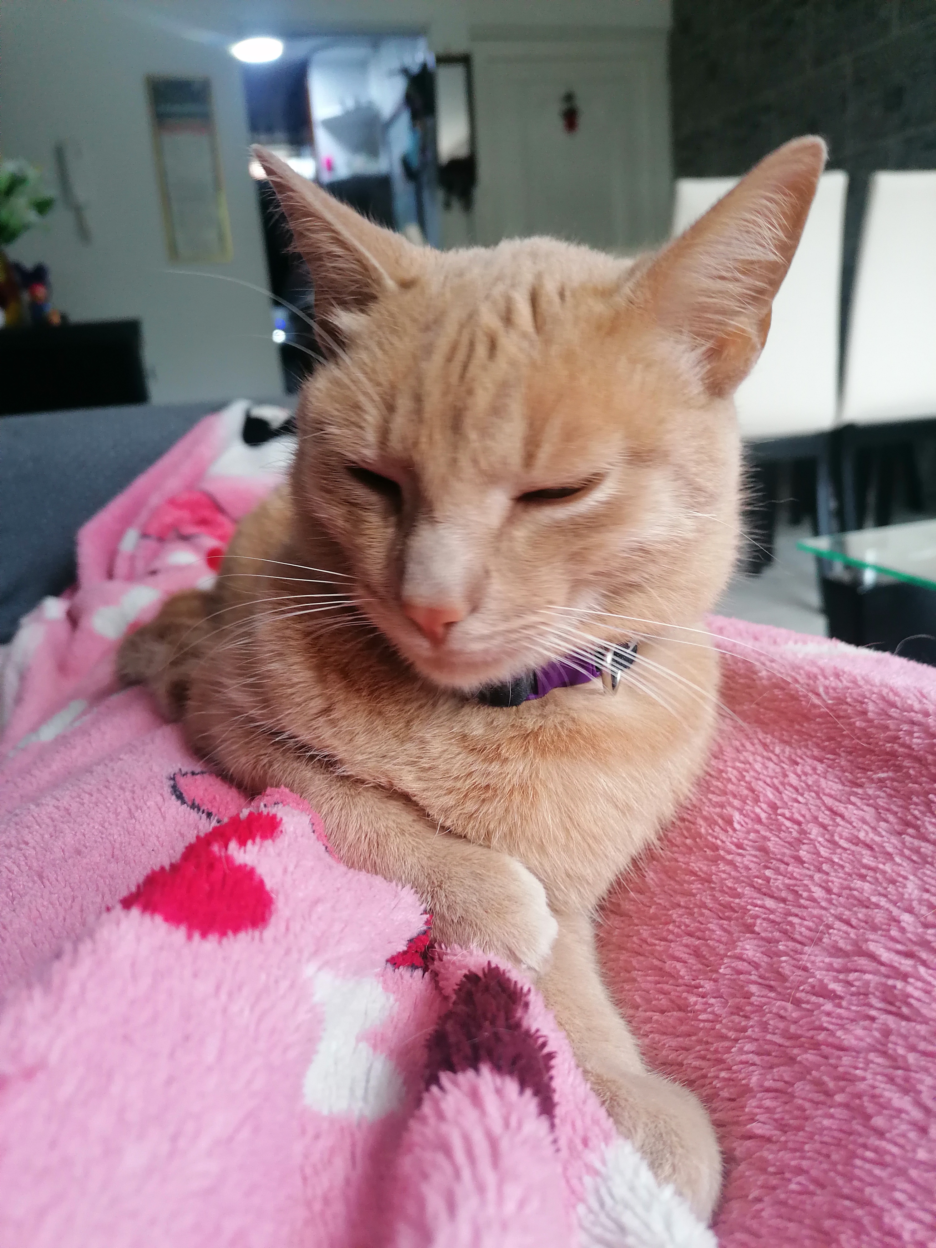✅ En el momento que se extravió tenía puesto un collar morado con verde.