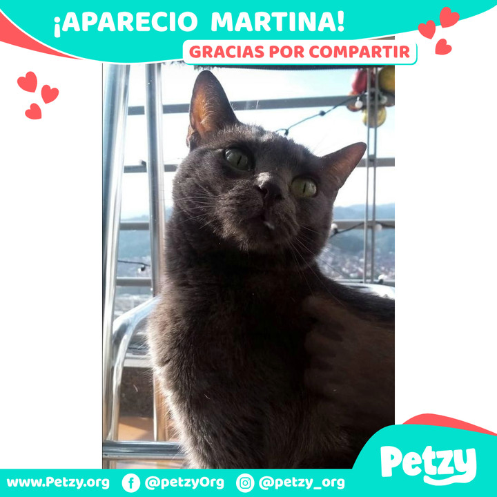 Estoy muy agradecida con Petzy porque hicieron un excelente trabajo cuando mi gatica se perdió.  Ya la gatica está en casa y nosotros muy felices con el acompañamiento desde el día uno hasta el final de petzy. Con sus reportes y compromiso ver la cantidad de gente que gracias a petzy te ayuda a buscar y compartir.  Es una excelente ayuda. Gracias los súper recomiendo. ❤️