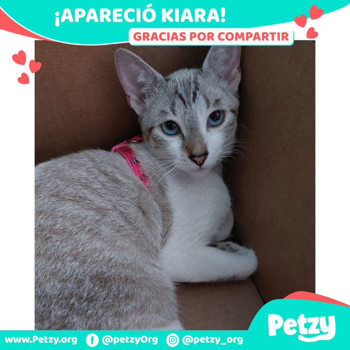 Estoy muy agradecida con Petzy porque hicieron un excelente trabajo cuando mi gatica se perdió.  Ya la gatica está en casa y nosotros muy felices con el acompañamiento desde el día uno hasta el final de petzy. Con sus reportes y compromiso ver la cantidad de gente que gracias a petzy te ayuda a buscar y compartir.  Es una excelente ayuda. Gracias los súper recomiendo. ❤️