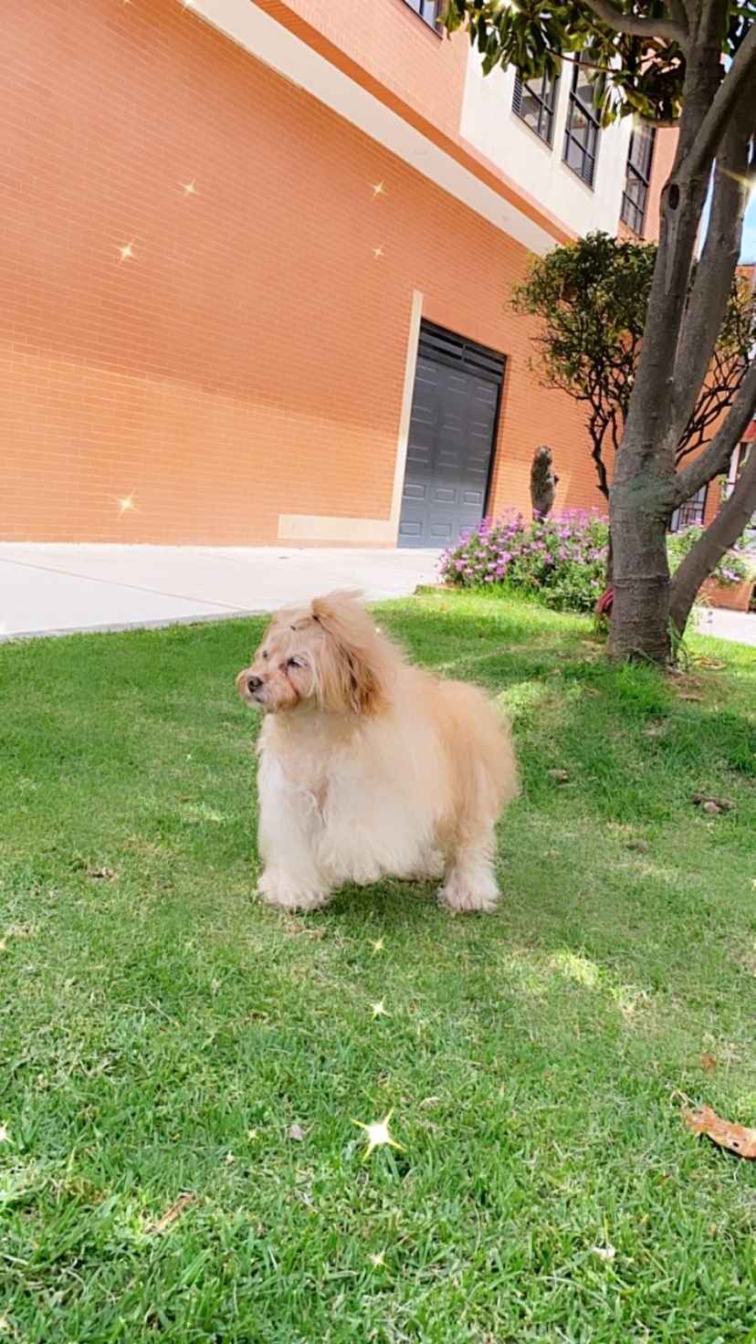 ✅ Es una perrita de tamaño pequeño, es de pelo largo, su pelito es de ncolor dorado y blanco. Tiene una verruga en el párpado móvil del ojo derecho y no tiene todos los dientes.
