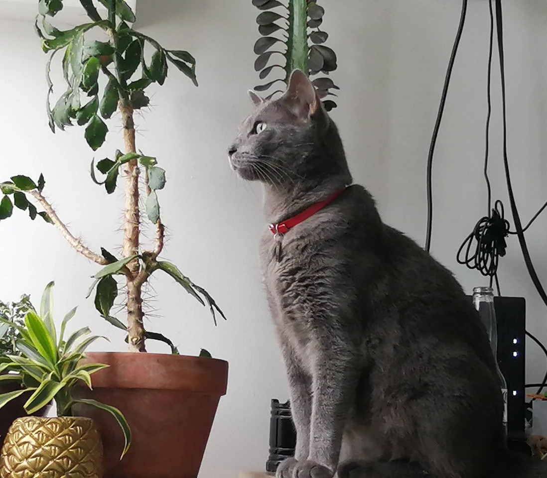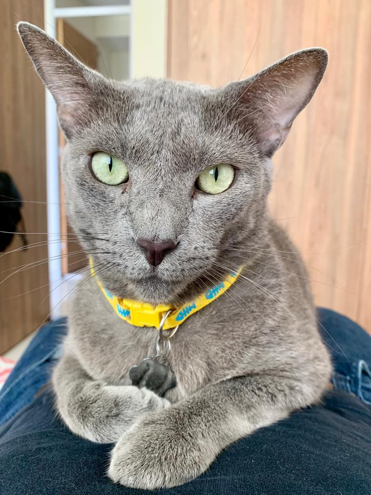 ✅ Es un gato macho, de pelo gris, ojos verdes, adulto, grande, tiene una cicatriz en la pata izquierda trasera nmás o menos a la altura del tobillo, tiene urolitiasis (cálculos en la vejiga), requiere medicamentos, concentrado medicado y cirugía si no recibe el tratamiento adecuado 😭 es muy consentido pero arisco.