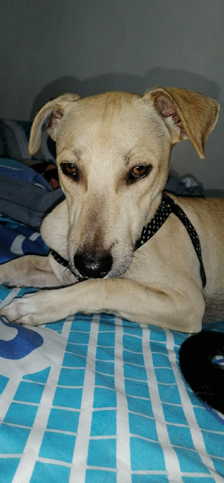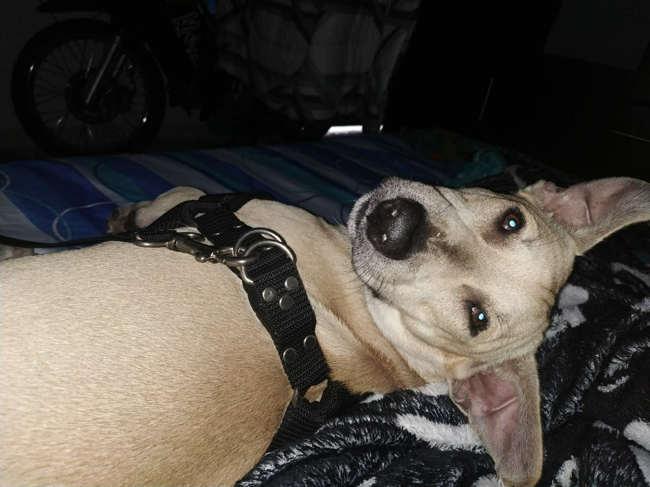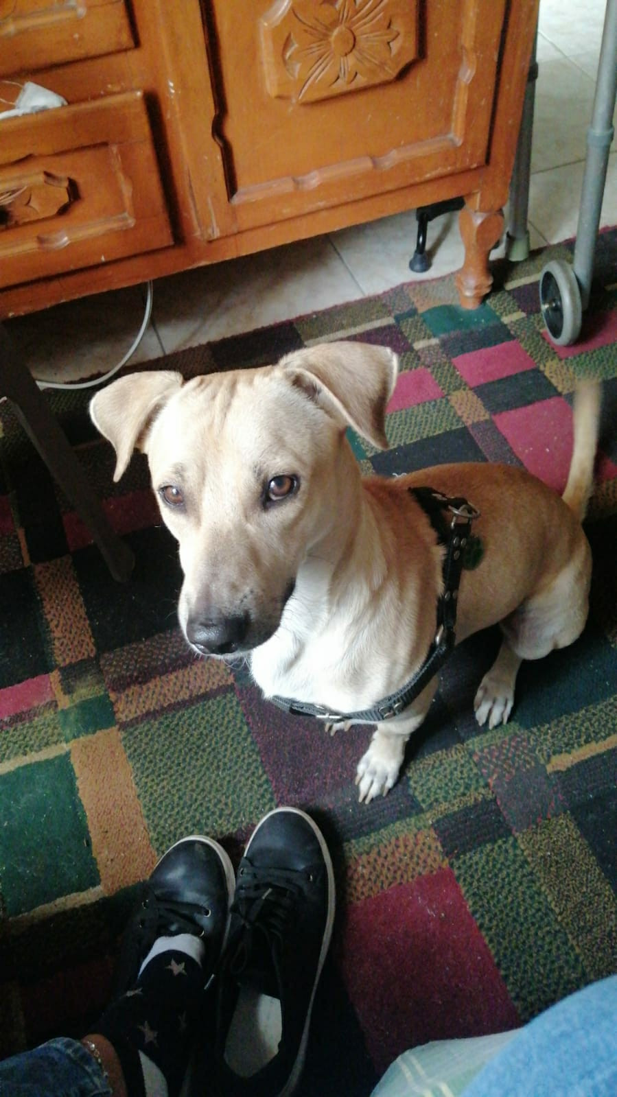 ✅ Se perdió con un collar tipo arnés de color negro.
