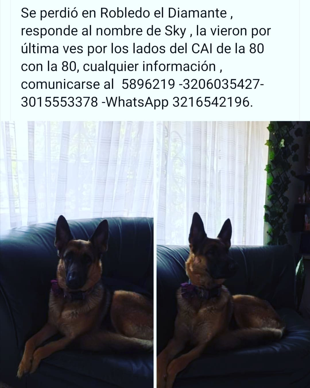 Compartimos con cada uno de ustedes la felicidad que vive Sky 🐶 y su familia por su regreso a casa 💪🏽 muchas gracias 🥳 a todos los que han sido partícipes de la búsqueda compartiendo y difundiendo 🏡