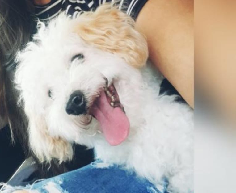 ✅ Es un perrito de tamaño pequeño, es de color blanco y con orejas amarillas o cafecitas.