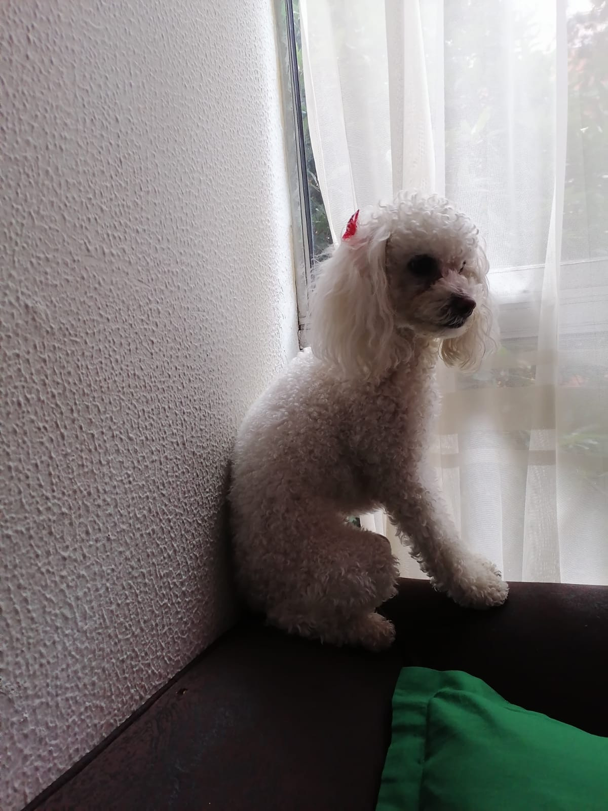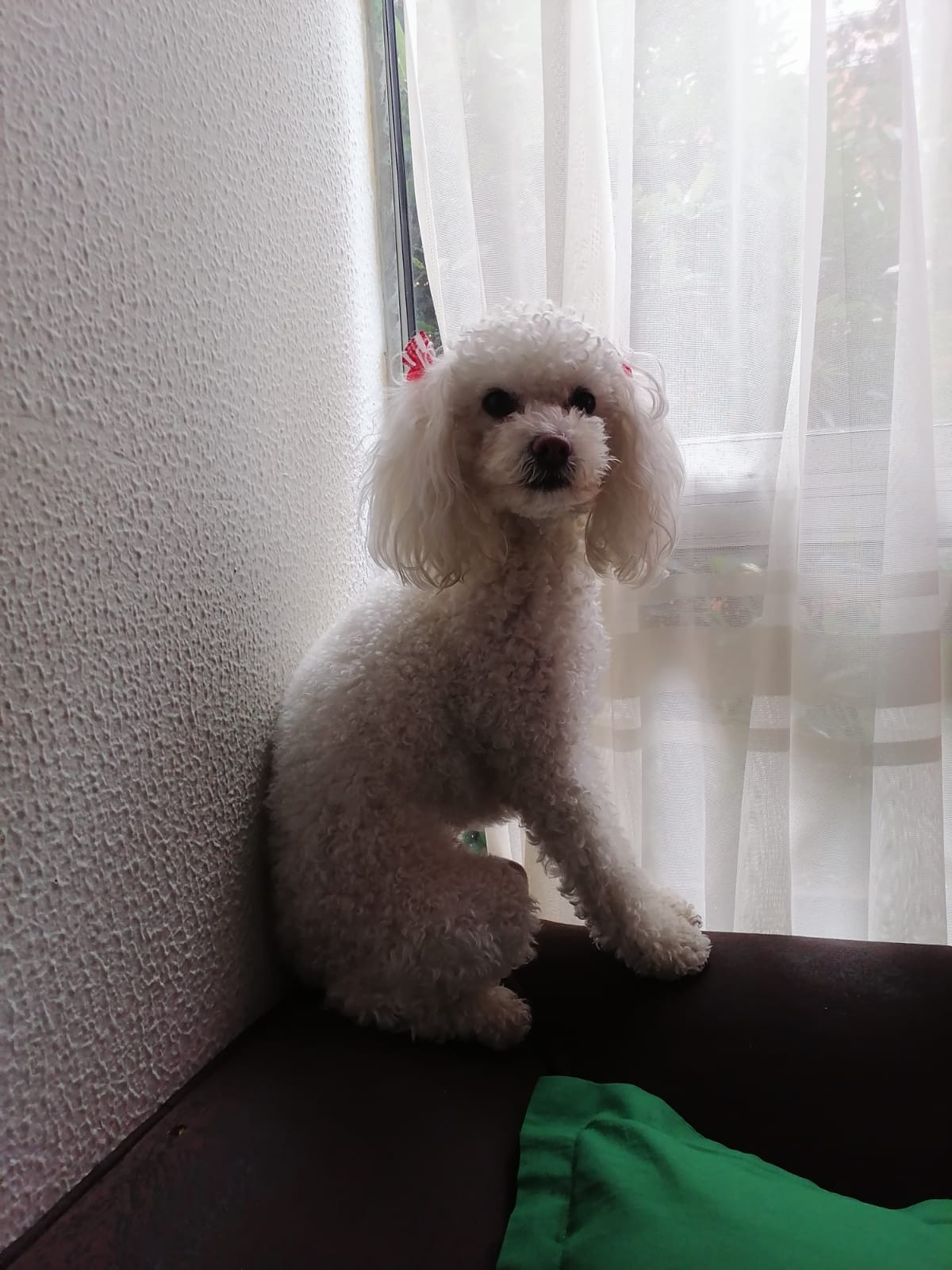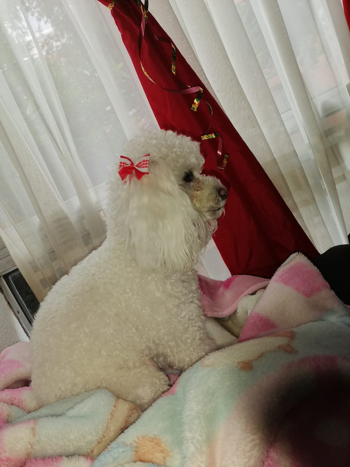 ✅ En el momento que se extravió tenía puestas unas moñitas rojas.