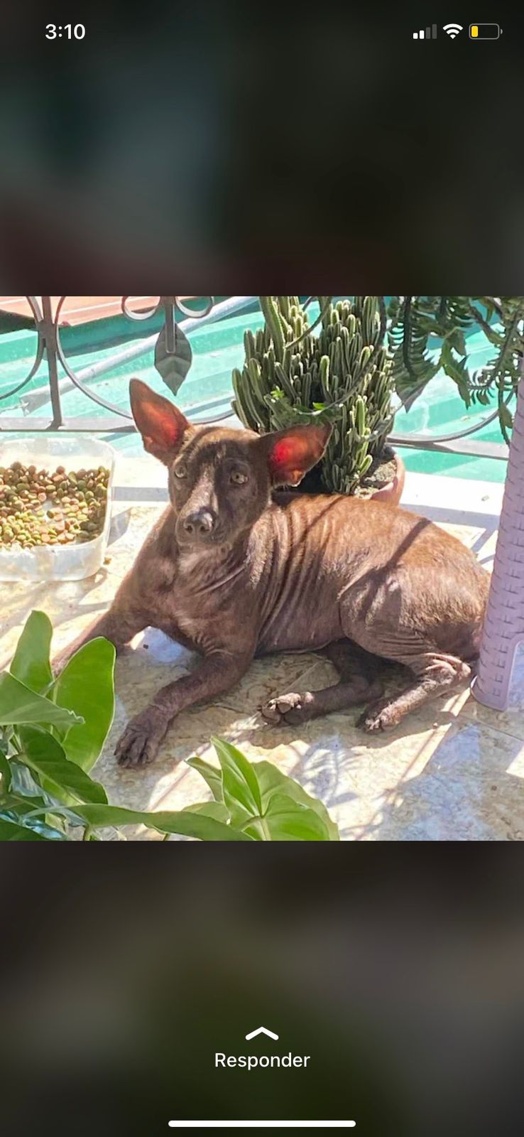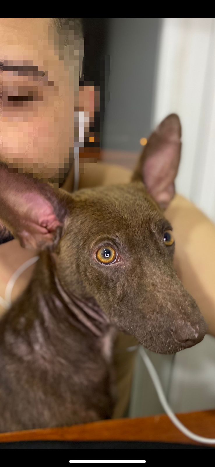✅ Es una perrita de color café, de poco pelo (tiene problemas de piel) es mediana y delgada.