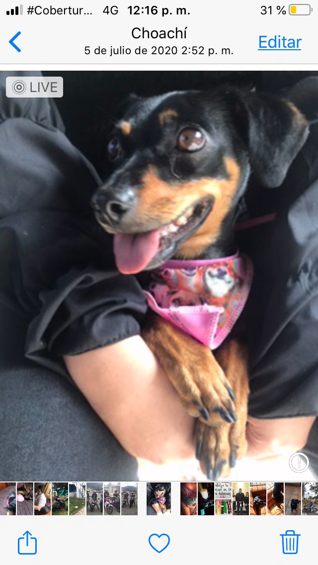 Si la ves, puedes darle hogar de paso 🏡 mientras su familia la recoge🙏 También puedes escribirnos 📩 al Messenger de Petzy, por DM o a nuestra línea ☎️ Whatsapp 313 349 7682.