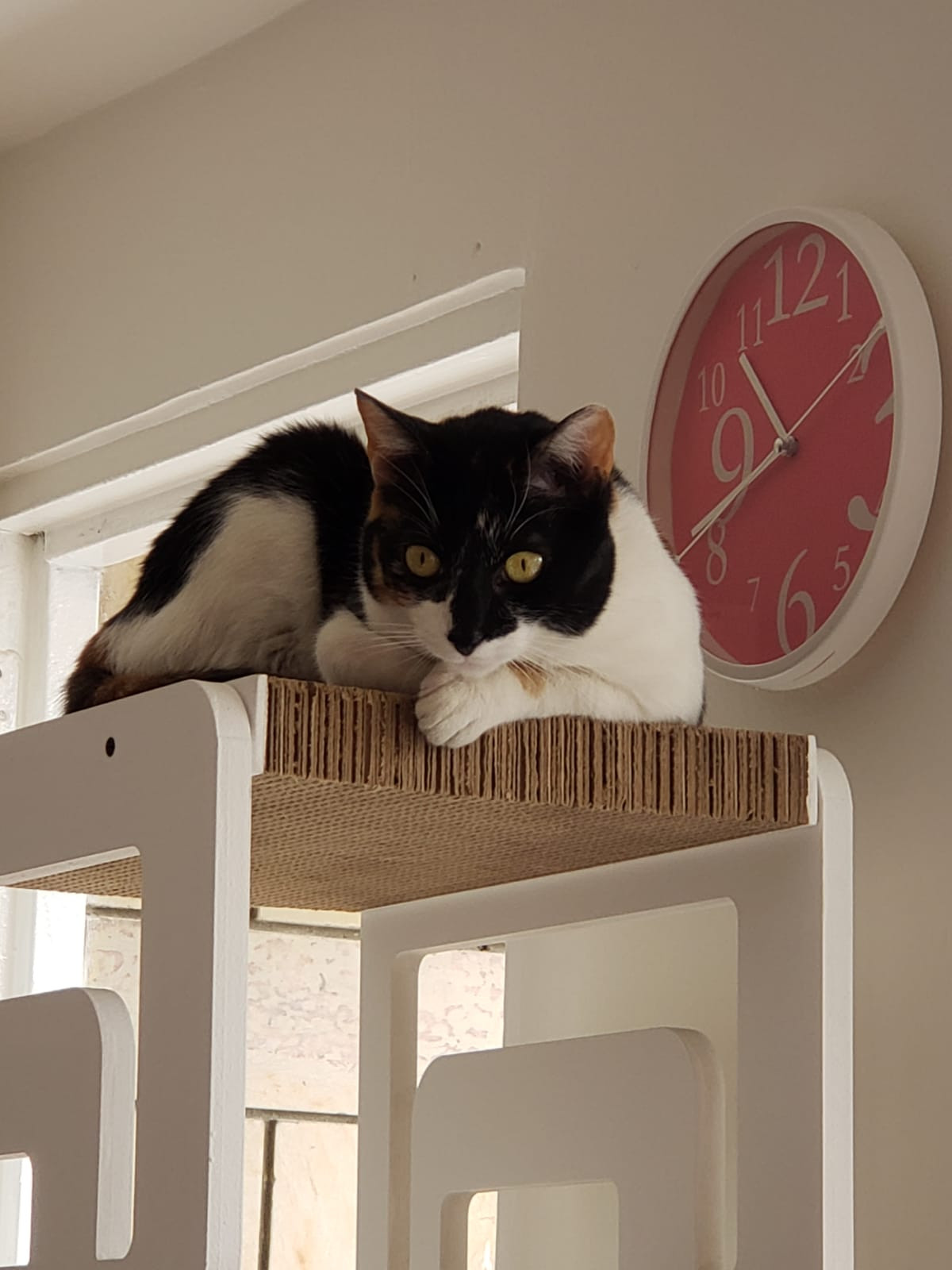 ✅ Es una gatica de tres colores blanco, amarillo y negro, en su carita tiene más negeo al igual que la cola.