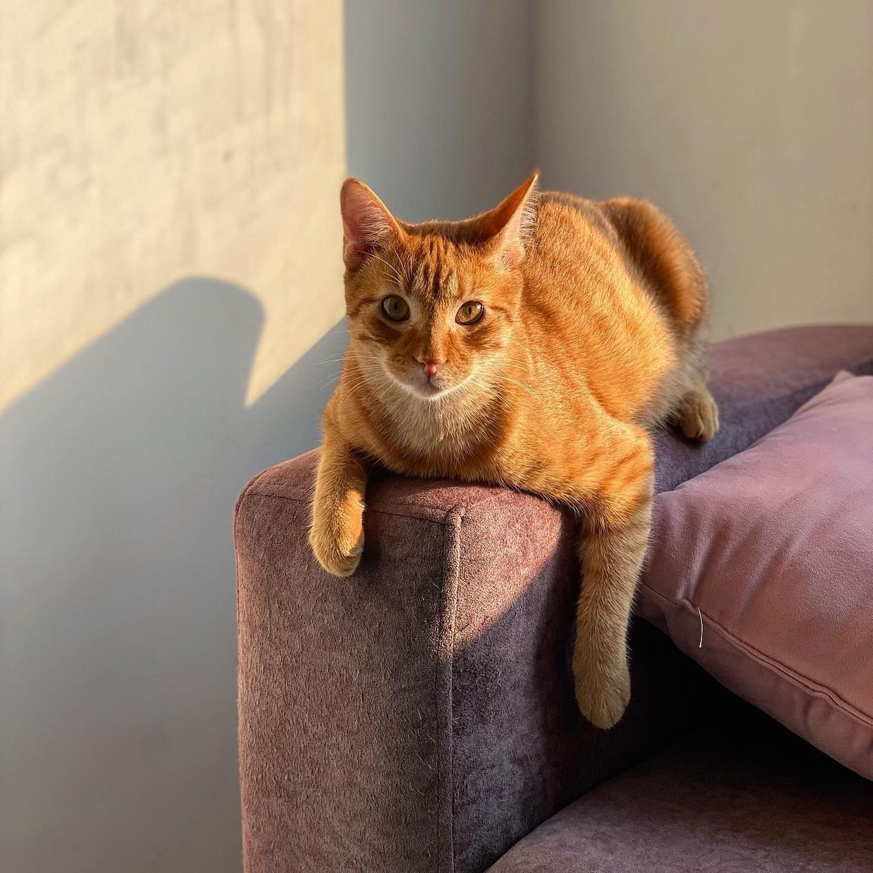 ✅ Es un gatico de tamaño grande, es amarillo, es de pelo liso no abundante y la colita es delgada.