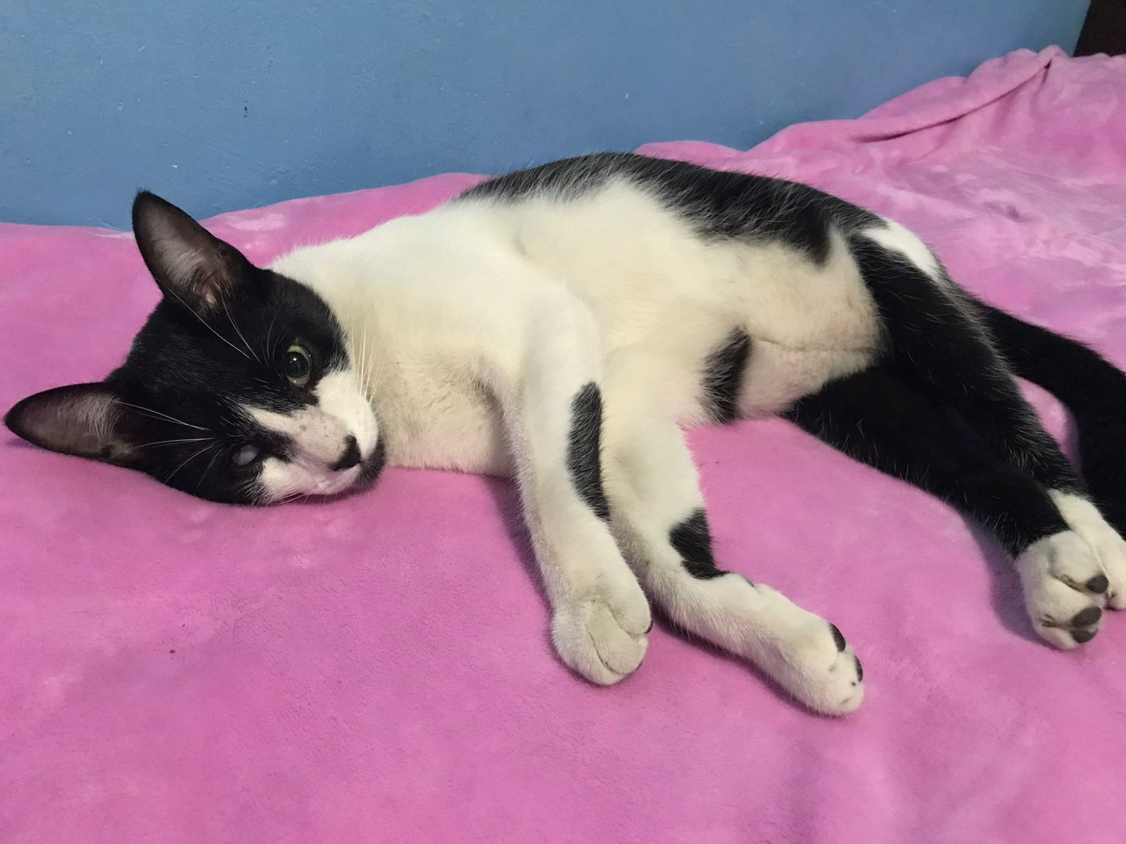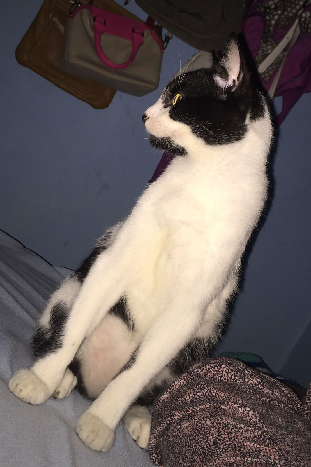 ✅ Aurelio es un gatico de 4 años blanco con negro, el solo ve por el ojito izquierdo en el derecho es cieguito y apagadito, es delgado y le cuelga de la barriguita la bolsita que les sale despues de esterilizarse.