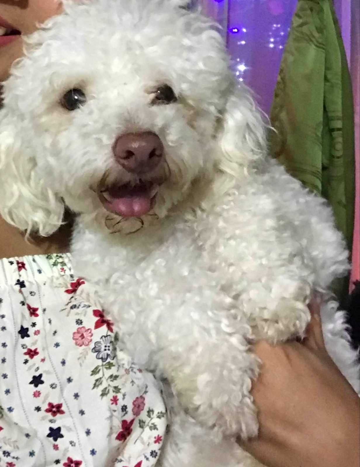 ✅ Es perrito blanco, su pelito crespo, es peludo y su nariz es rosadita.