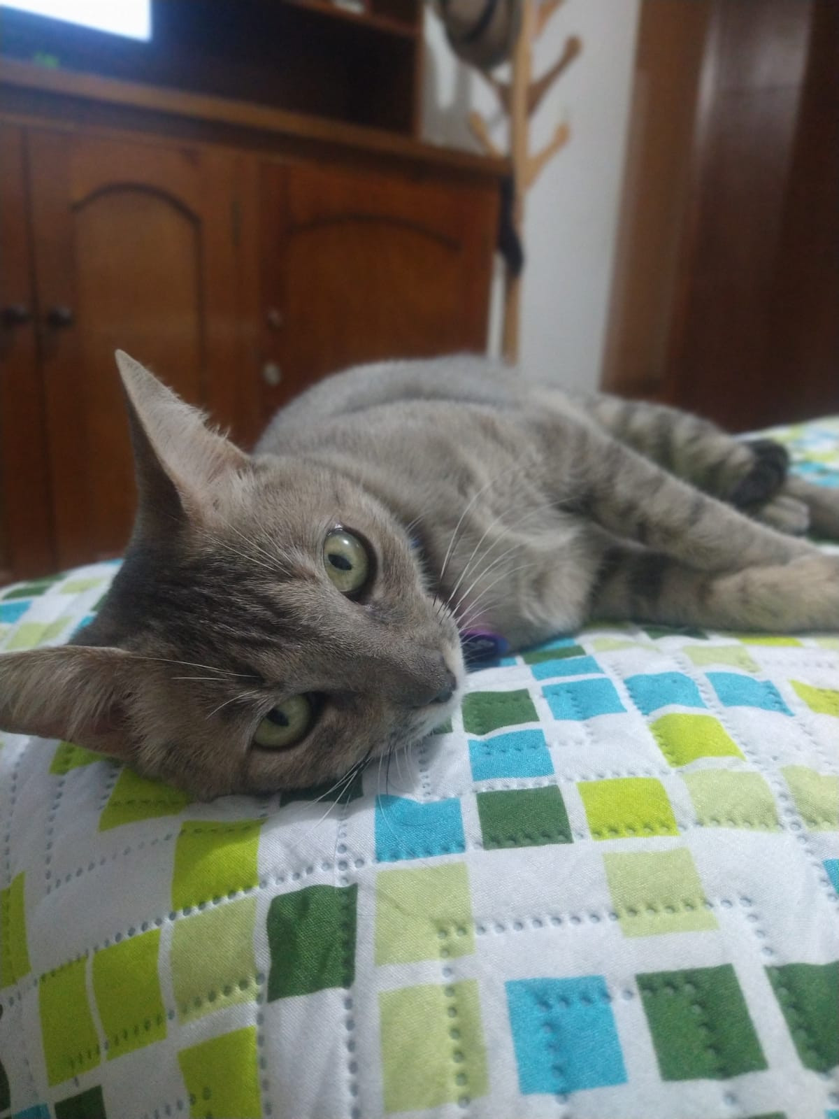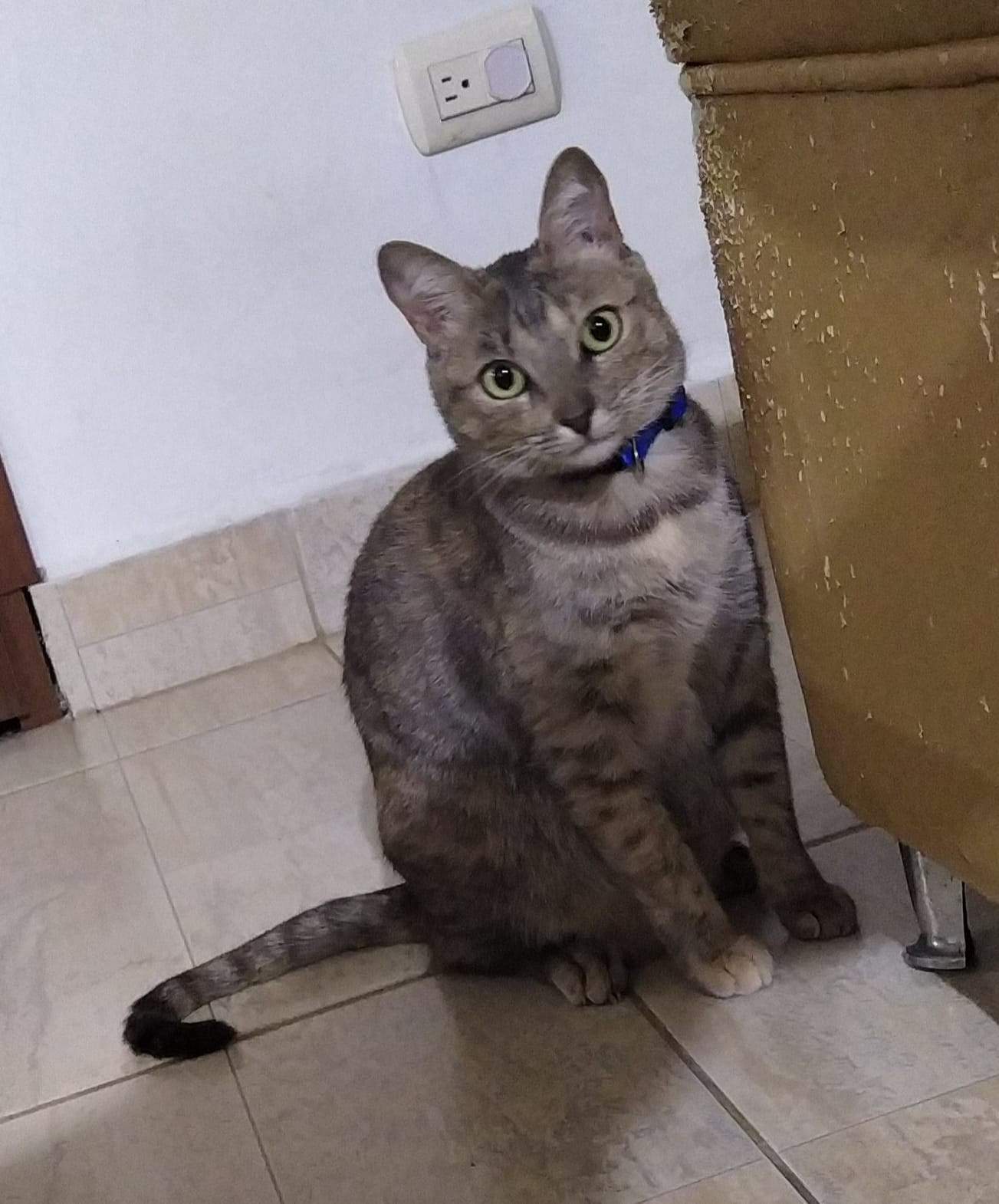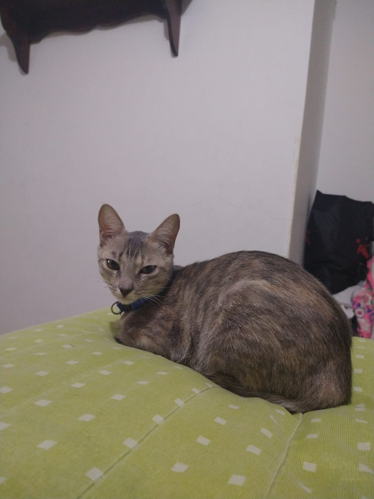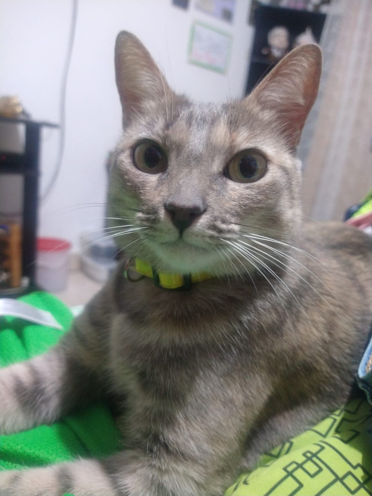 ✅ Es una gatica de contextura delgada, es atrigrada y de ojos verdes y su carita es pulida.