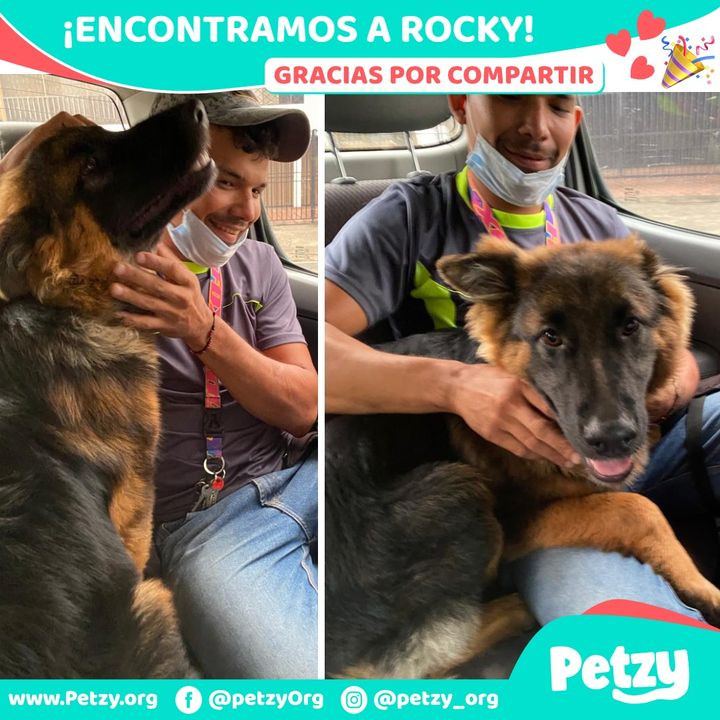 Y en este medio día les ccontamos otra excelente noticia 🥳 gracias a la difusión masiva 👏 que se ha hecho de la pérdida de Rocky 🐶 se logró dar con las personas que le estaban dando hogar de paso 🏡 y así ha llegado el punto final de la angustia que vivía su familia 🥺 agradecemos a todas las personas que se tomaron el tiempo de compartir y ayudar con la búsqueda y difusión ❤
