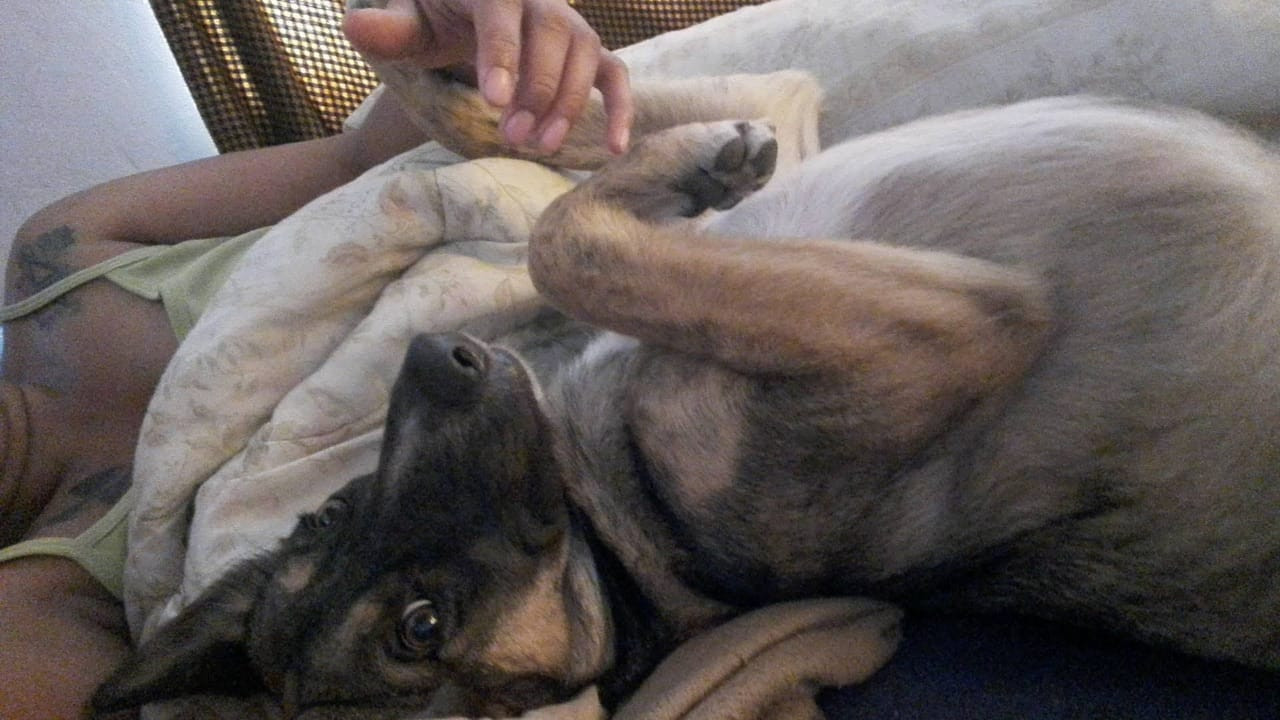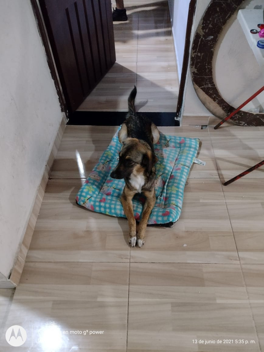 ✅ Es marroncita con el cuello y patas blancas, es criolla pero se relaciona con un pastor alemán.