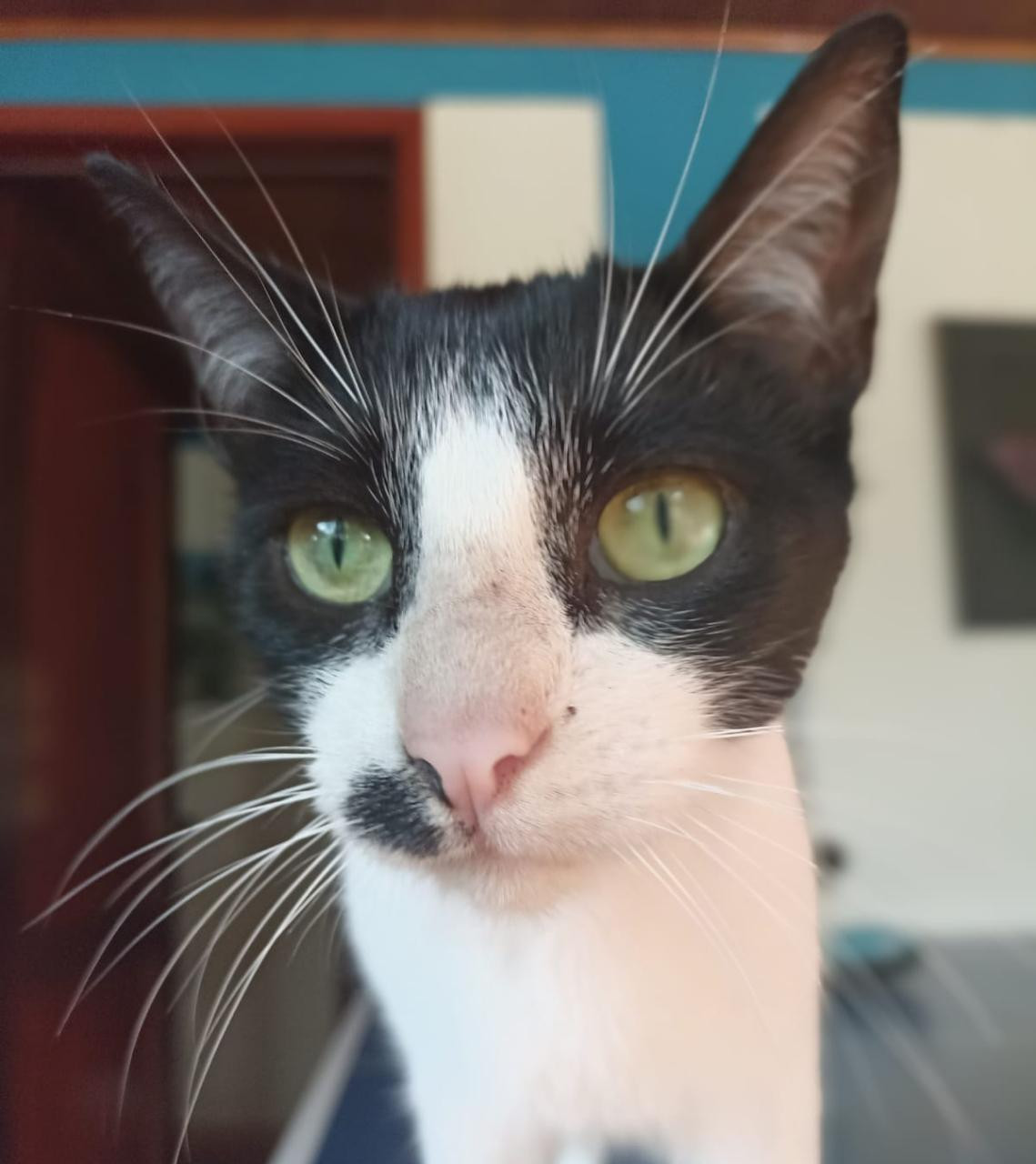 ✅ Es un gatico, macho, es de tamaño mediano, es de color blanco y negro, tiene un lunar en la parte derecha de su boca y una pequeña peladura en la nuca.