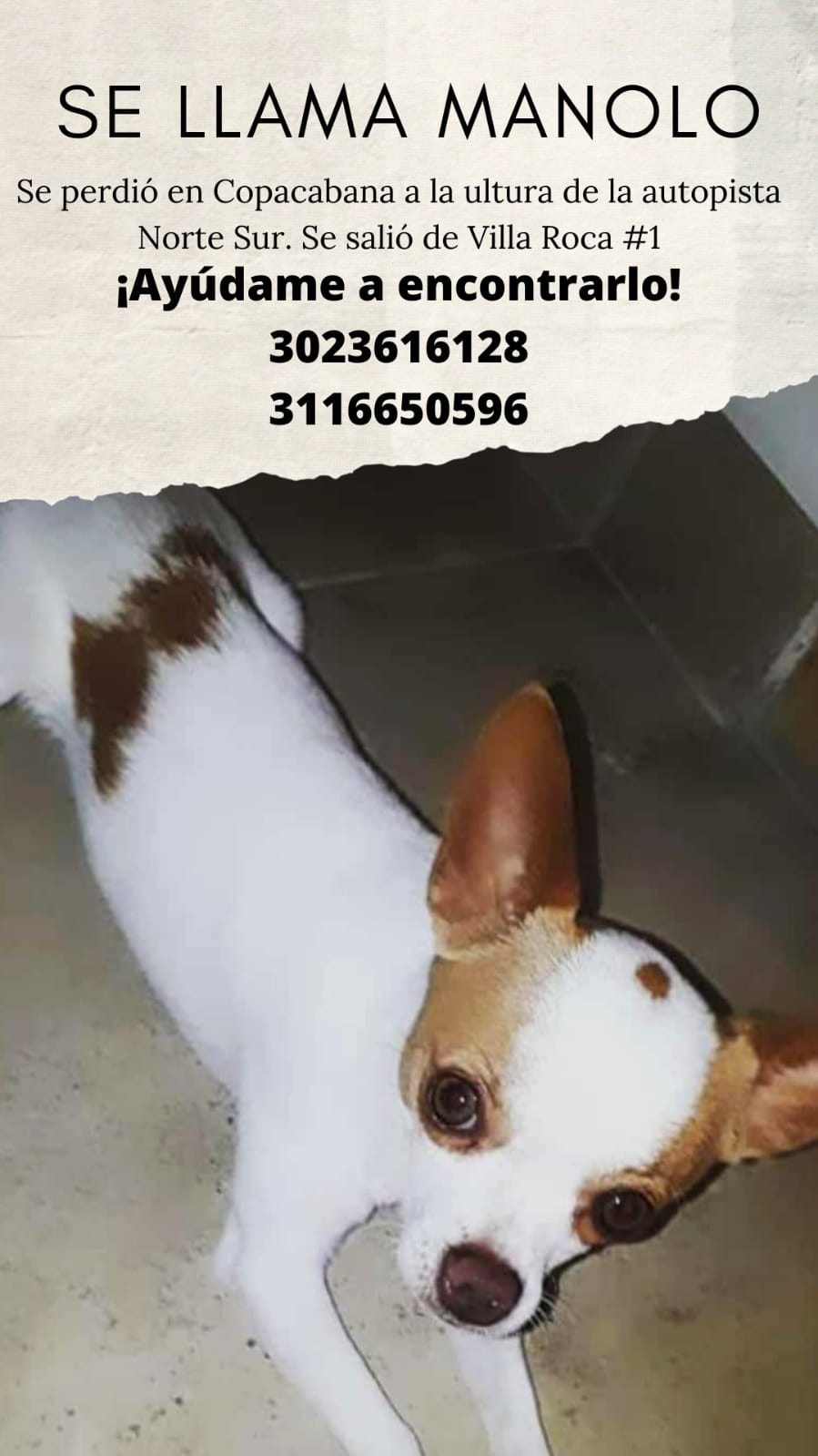 Manolo ❤ ha sido rescatado 🥳 y su familia está sumamente agradecida 🤗 con cada una de las personas que han ayudado ❤️ en la búsqueda y localización de su peludito, mil gracias a todos por siempre compartir 😍