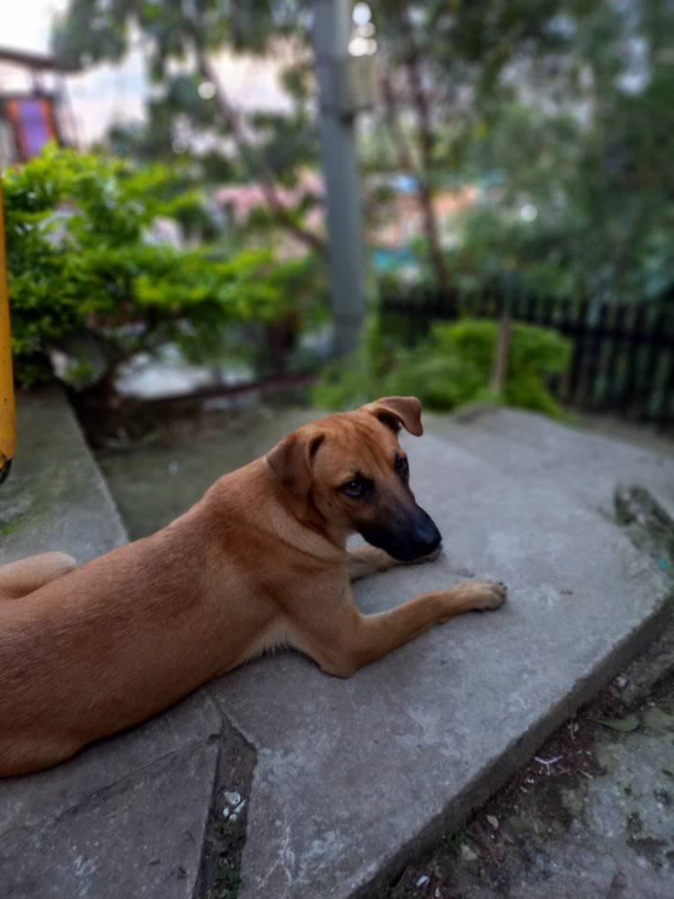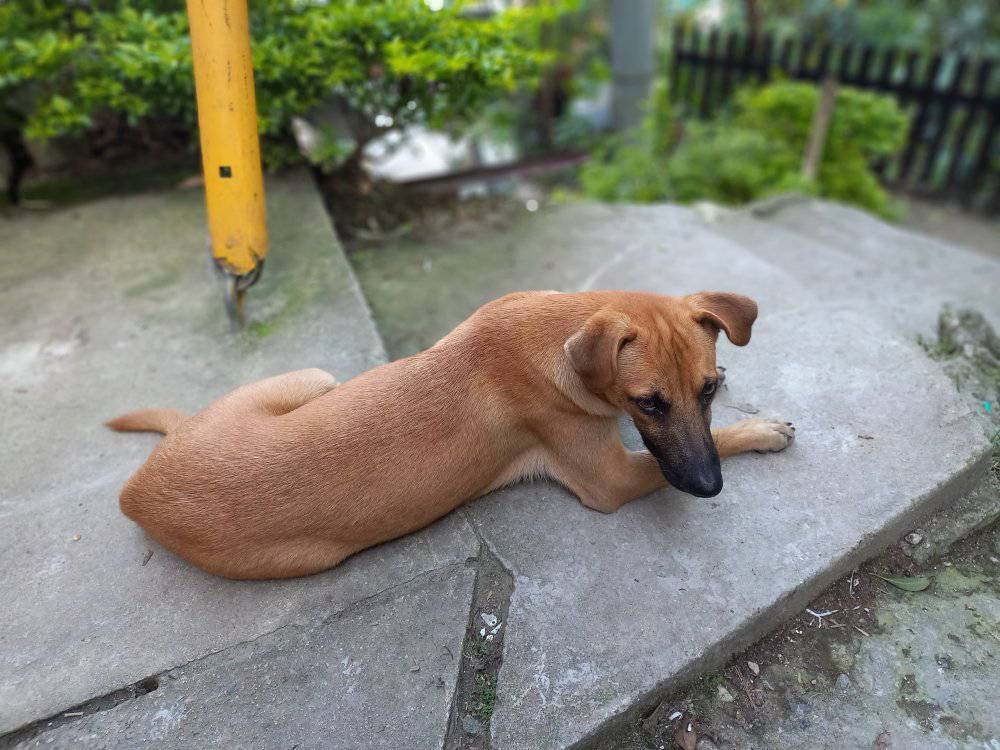 ✅ Es un perrito, macho, de color café, trompa negra, y tiene pelones justo donde se juntan las patas con el torso.