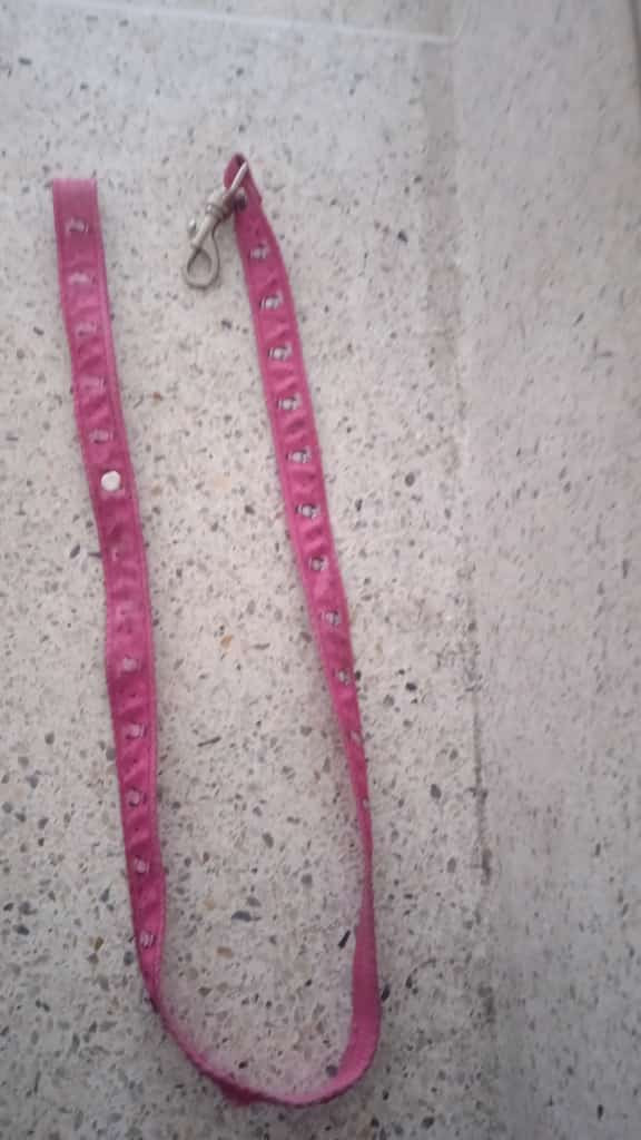✅ Llevaba en el momento de su perdida un arnés de color rosado.