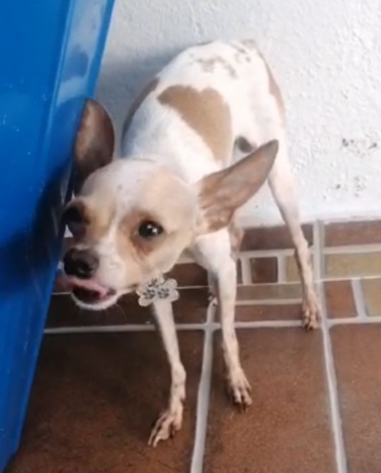 ✅ Es un perrito, macho, de contextura es delgado, es de color blanco y manchas de color miel en su torso una en forma de corazón, en su carita tiene una manchita blanca y tiene un solo testiculo.