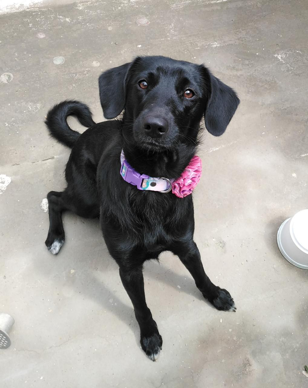 ✅ Es negra y sus patitas son blancas, tiene algo de pelo blanco en su pecho, tiene el número 85 en una de sus orejas y su colita parece a la de un cerdito.