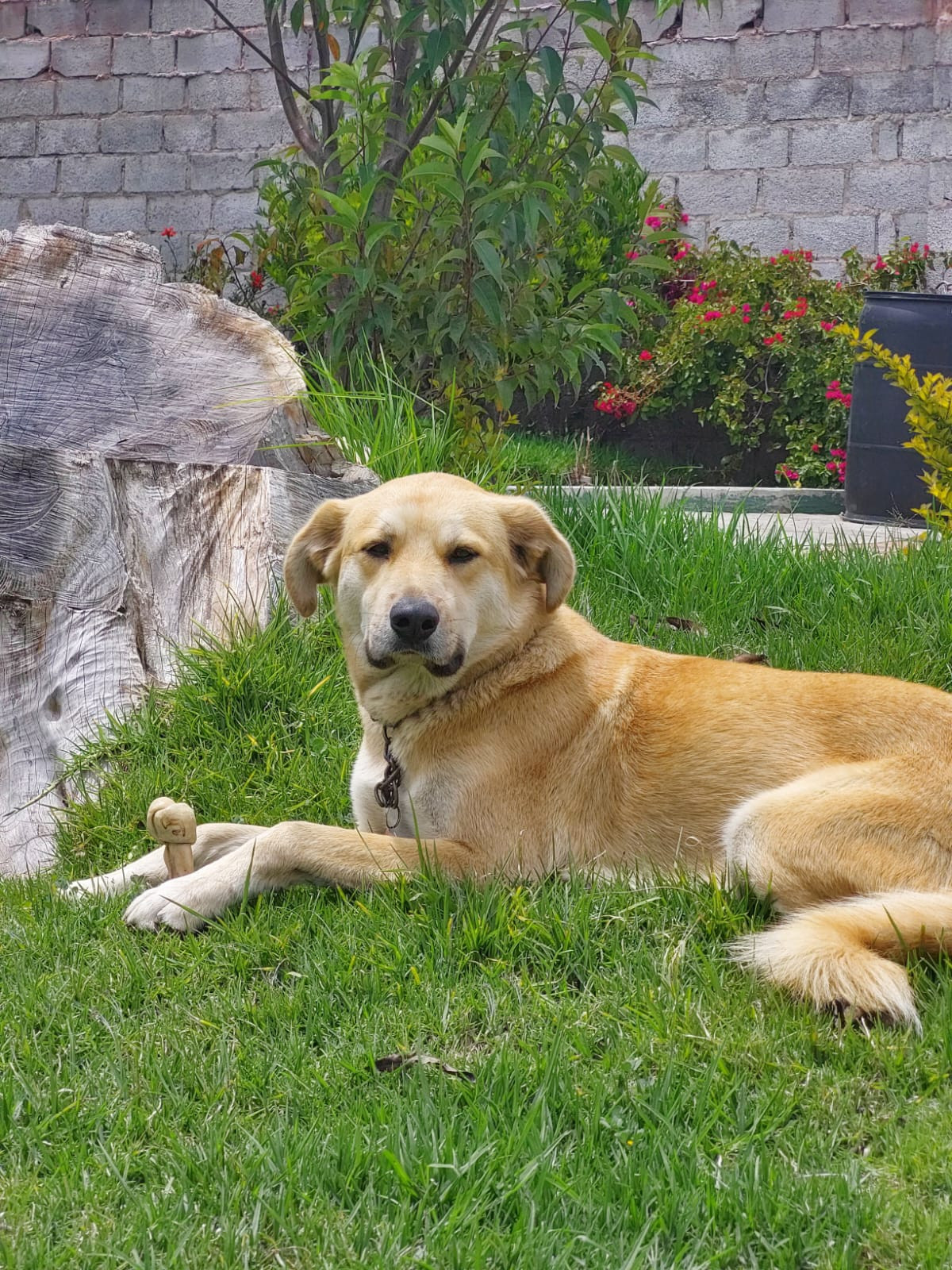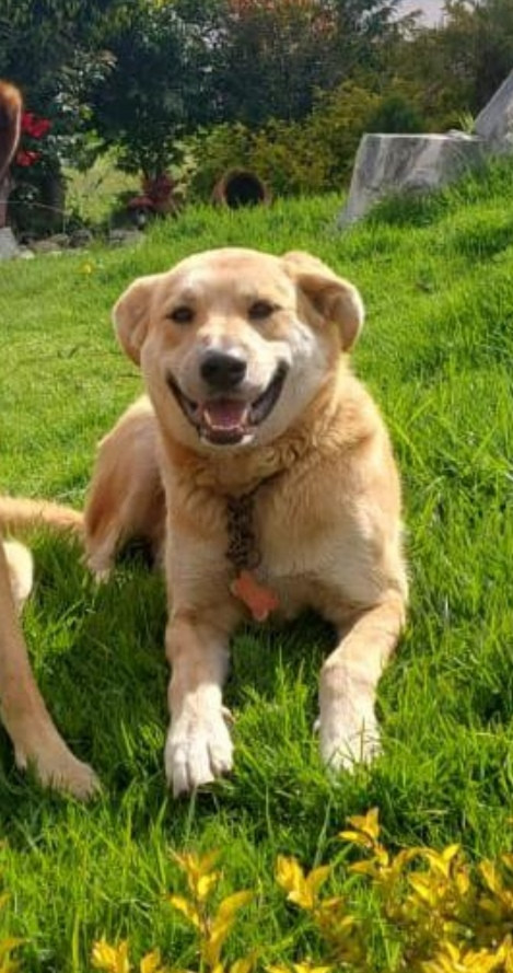 ✅ Tiene apariencia labrador dorado, patas grandes y largas igual cola larga.