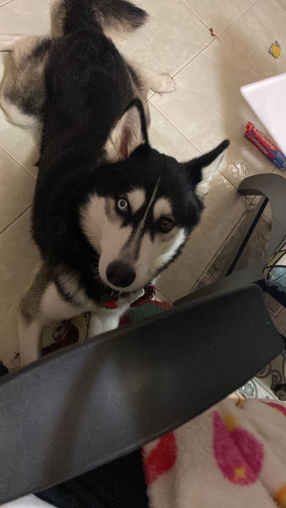✅ Su pelaje es negro con blanco, tiene un ojo de color gris y otro color café, contextura delgada.