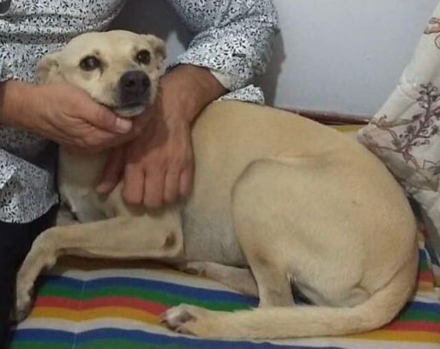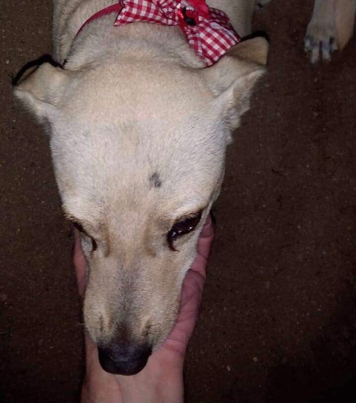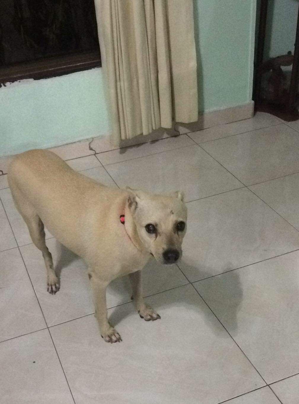 ✅ Es una perrita criolla, de tamaño mediano, es de color beige, tiene la cola larga, cojea de la pata izquierda trasera, no ve por un ojo.