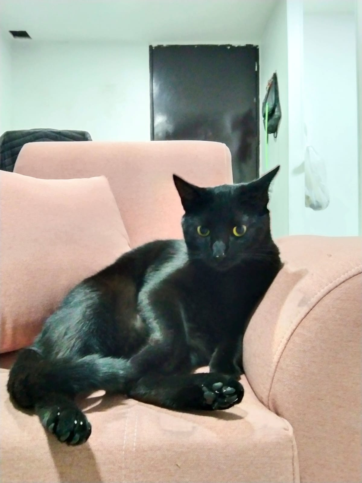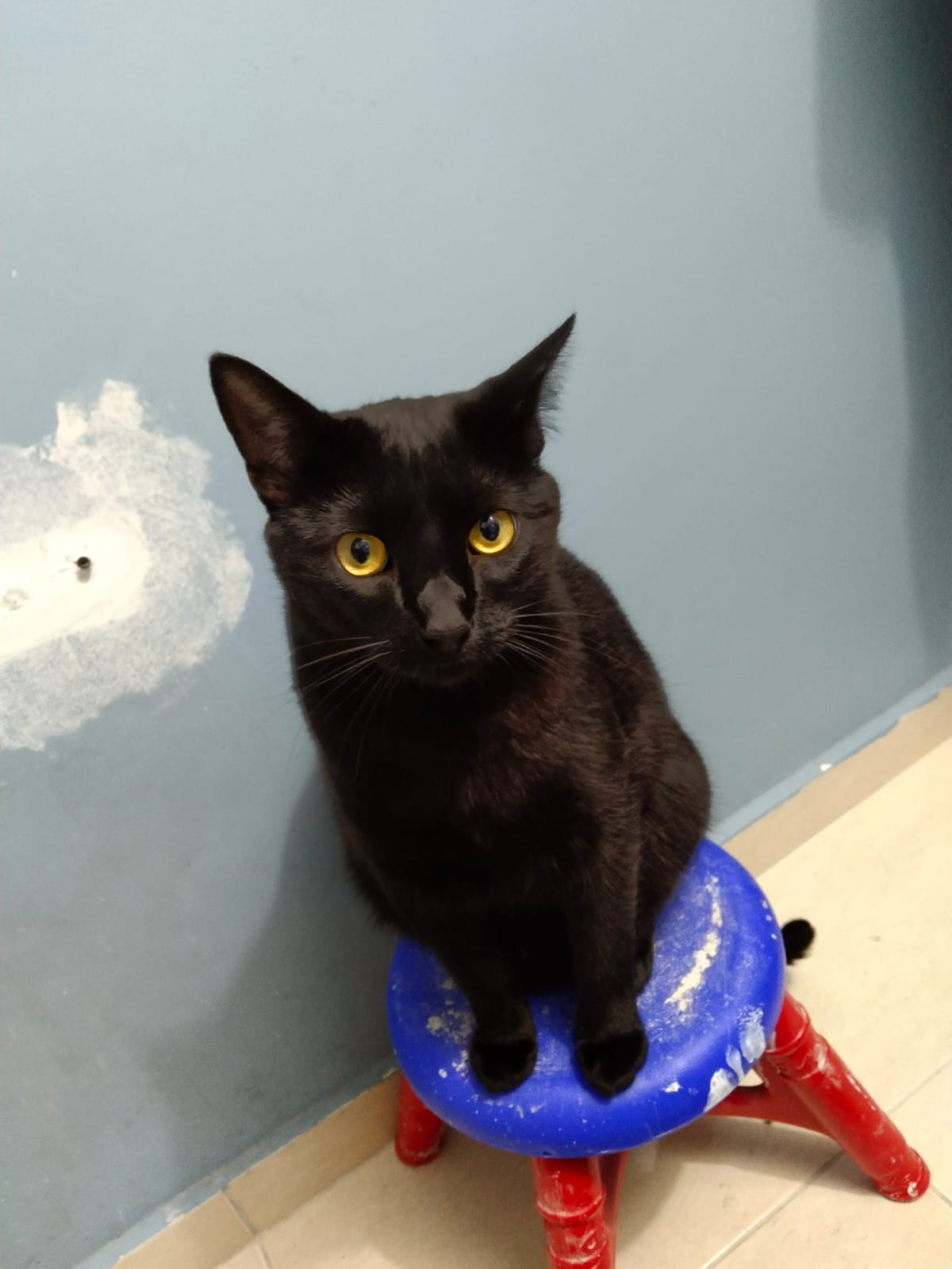 ✅ Es un gato, macho, criollito, completamente negro, es de tamaño grande y sus ojos son amarillos.