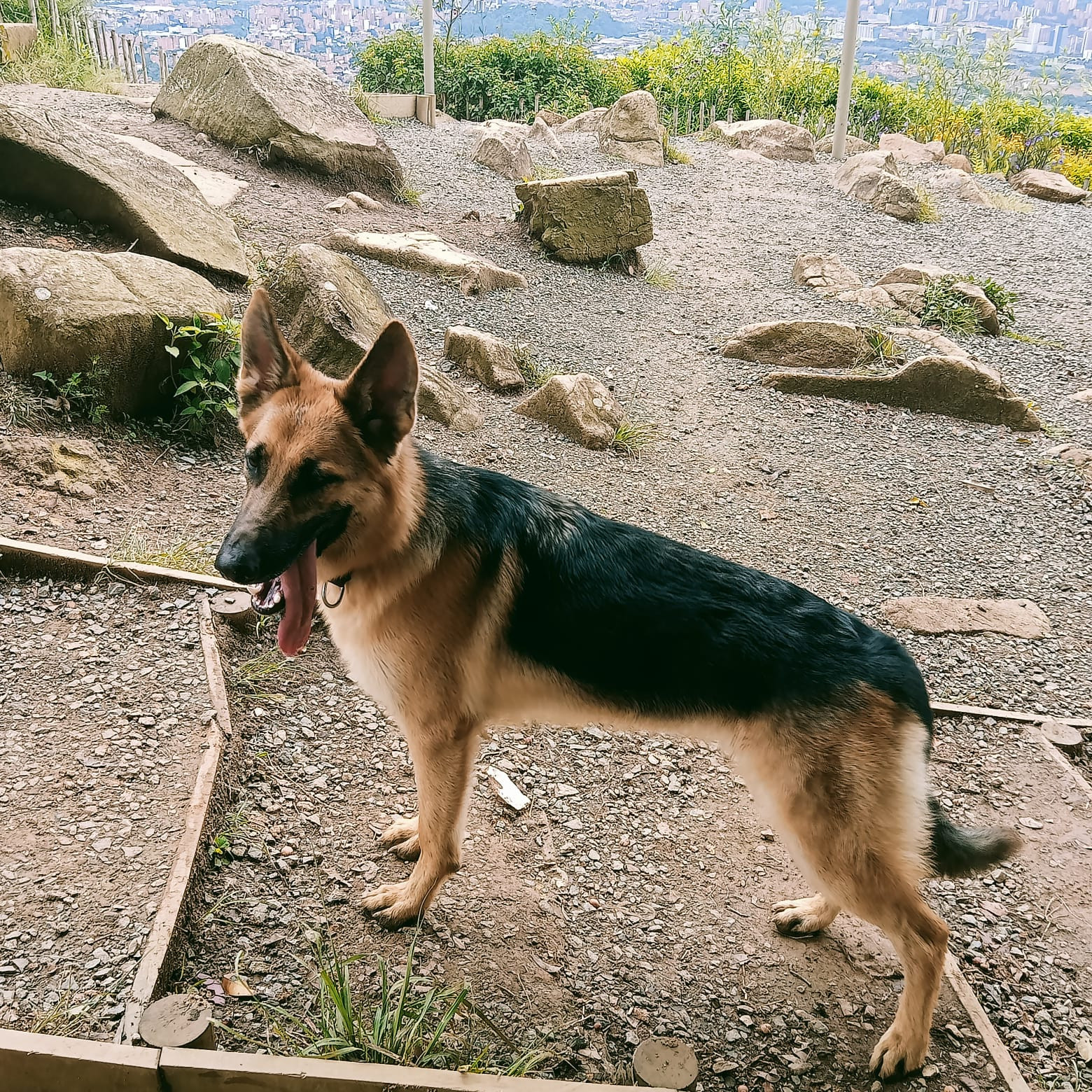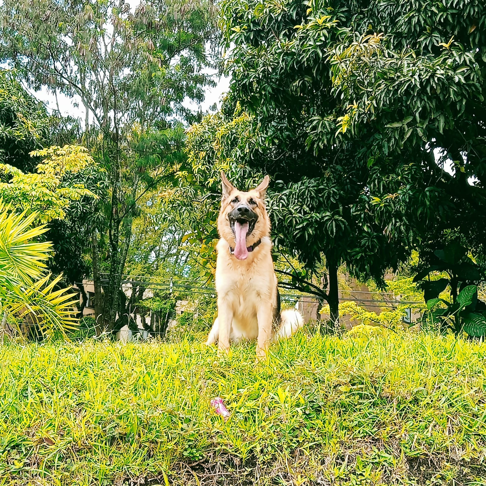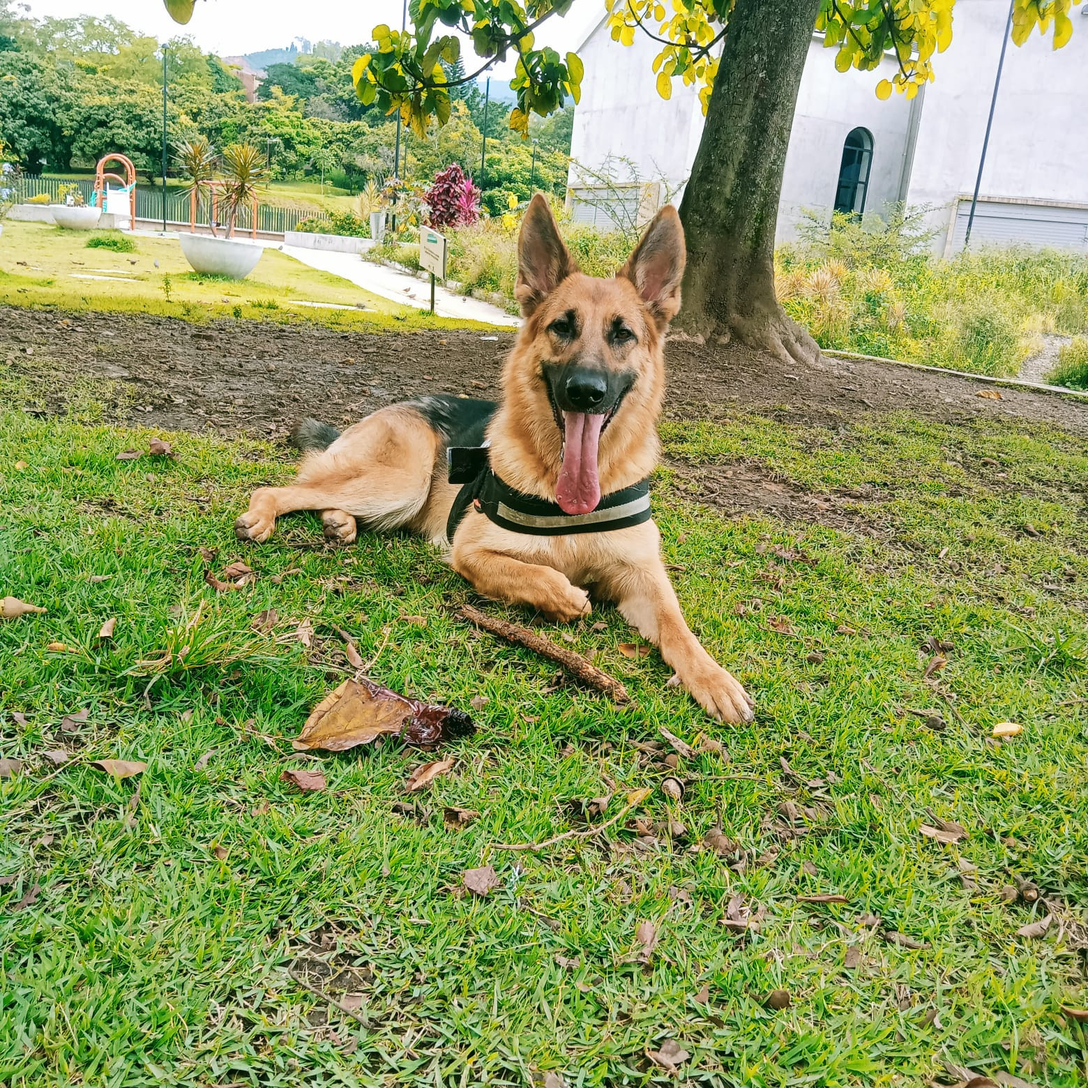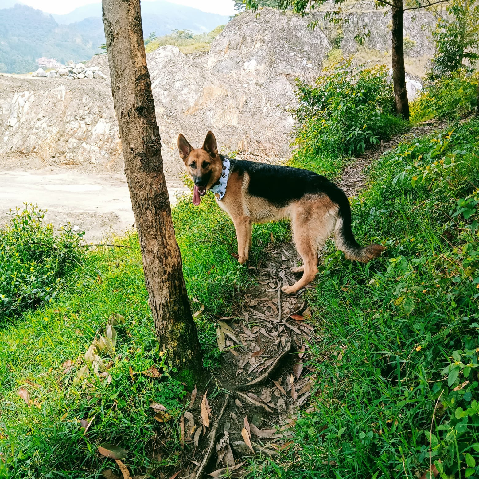 ✅ Es una perrita, hembra, raza pastor Alemán, de color café con negro, es de tamaño grande, tiene su colita larga.