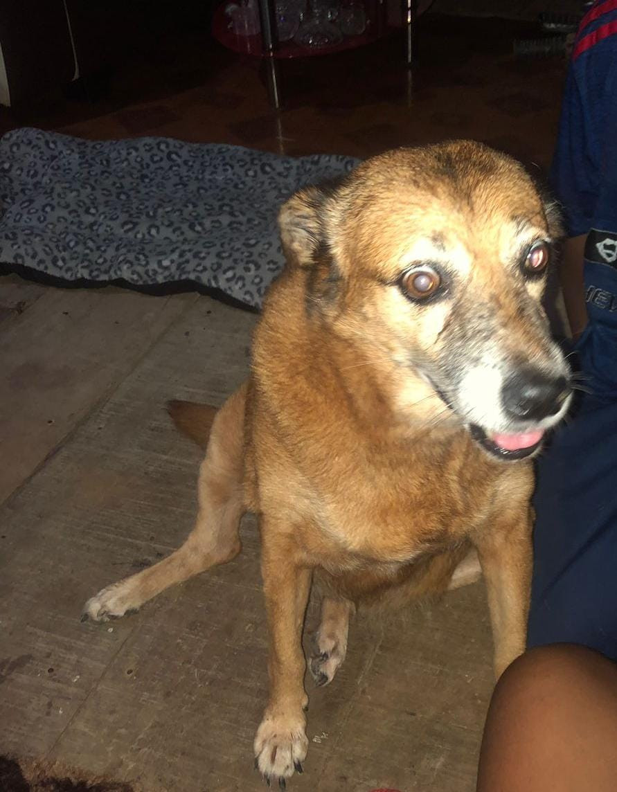 ✅ Es una perrita gordita, de color café y el color de sus ojos tambien son cafés.