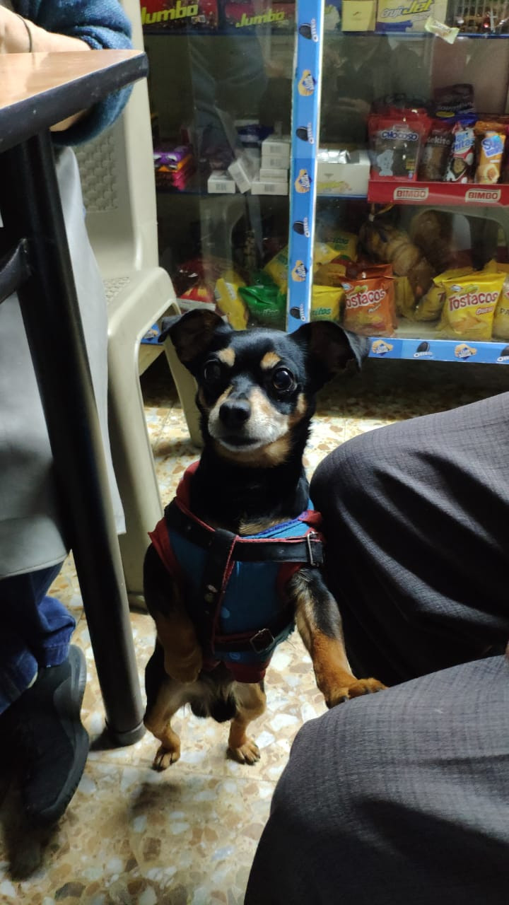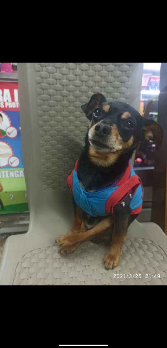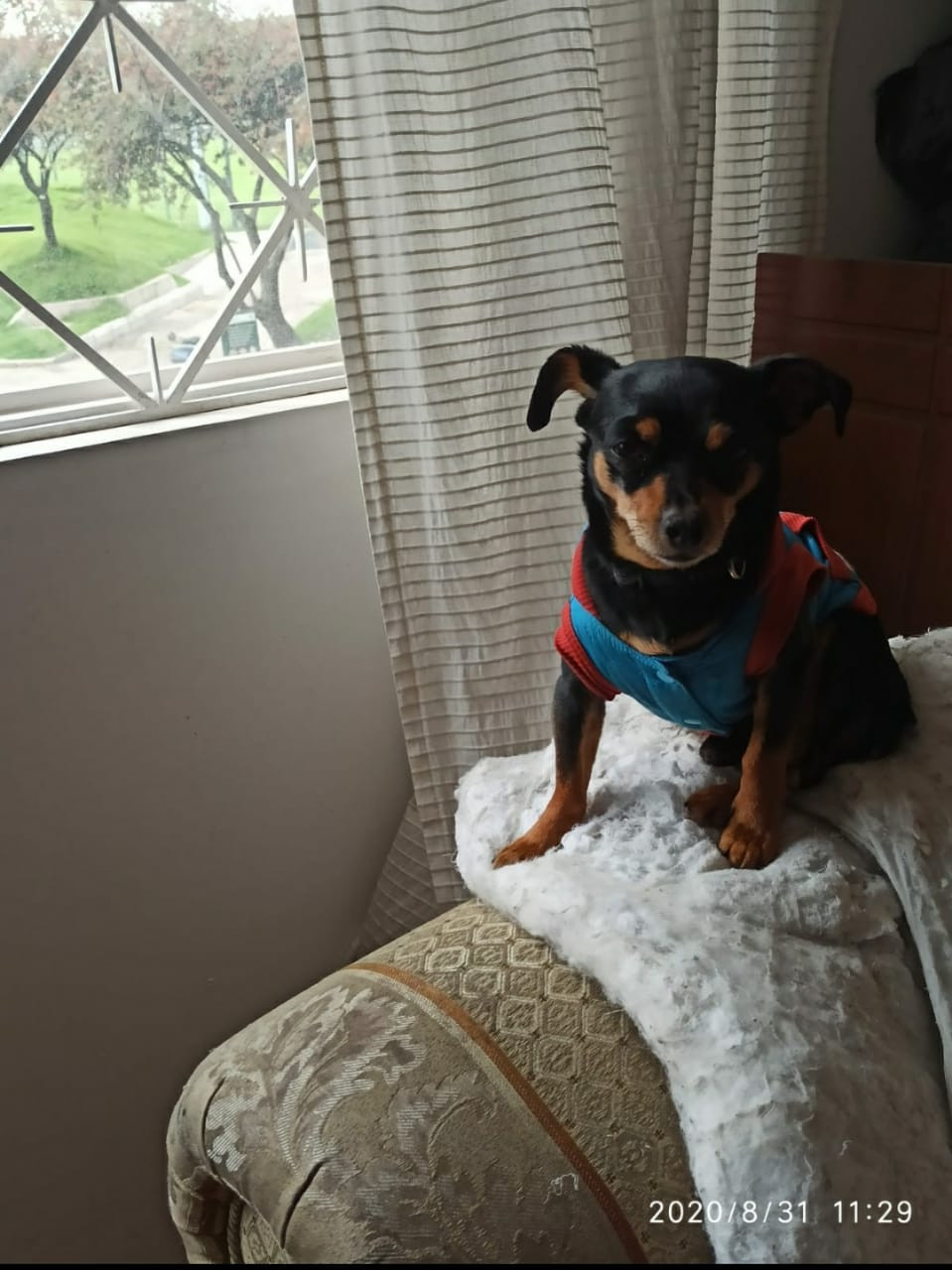 ✅ Es un perrito pincher, de tamaño pequeño, es de color negro, tiene una cicatriz en el lomo por la parte derecha y tiene la colita corta.