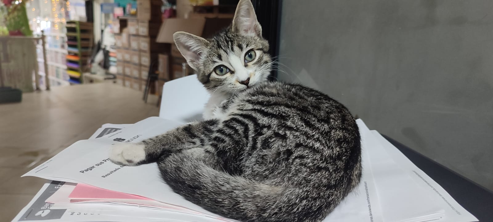 ✅ Es una gata de estatura pequeña, tiene ojos grandes, es atigrada con blanca.