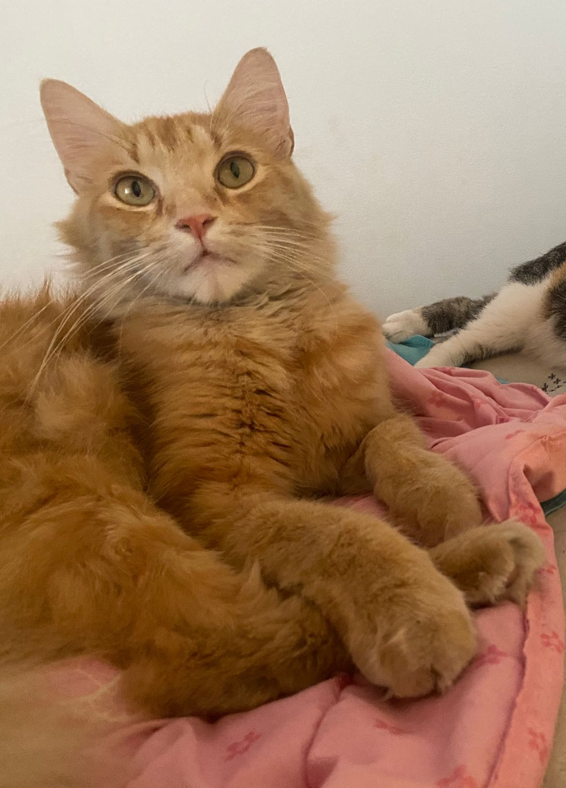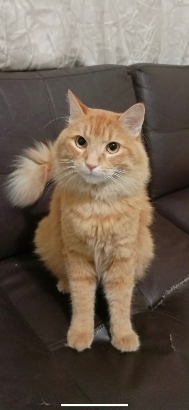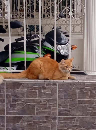 ✅ Es un gato de raza angora con criollito, de pelaje abundante, su cola es esponjosa, es un poco anaranjado y entre amarillo, es gordito.