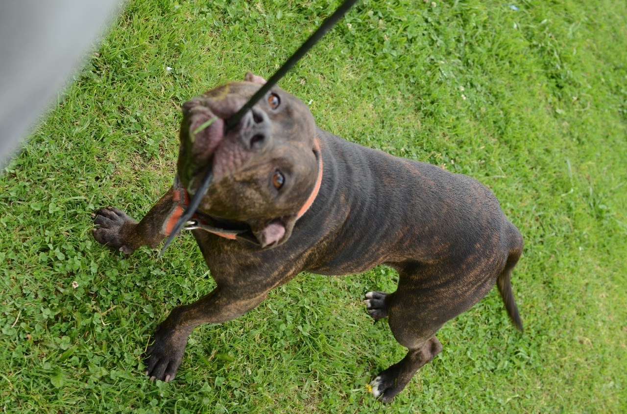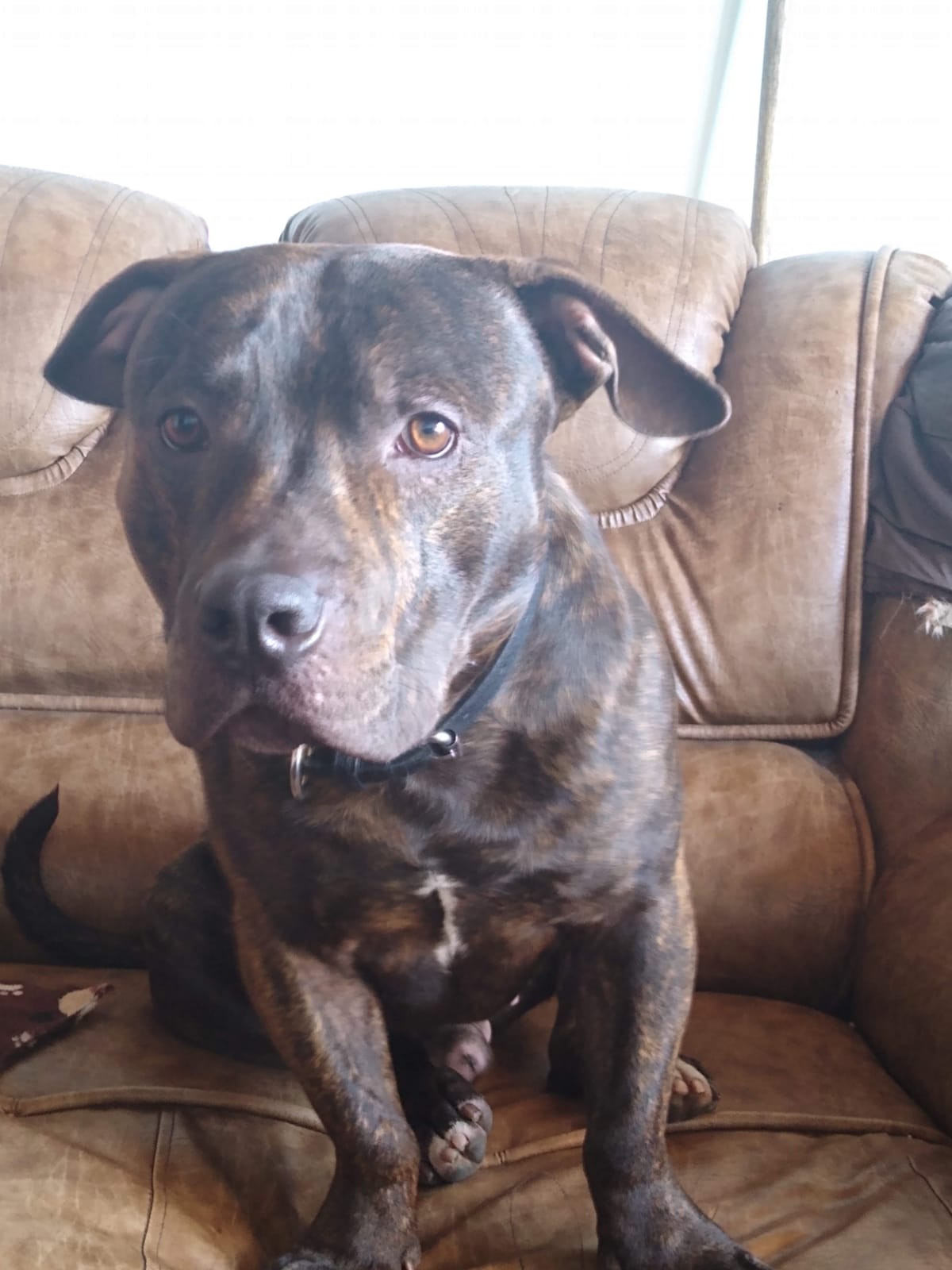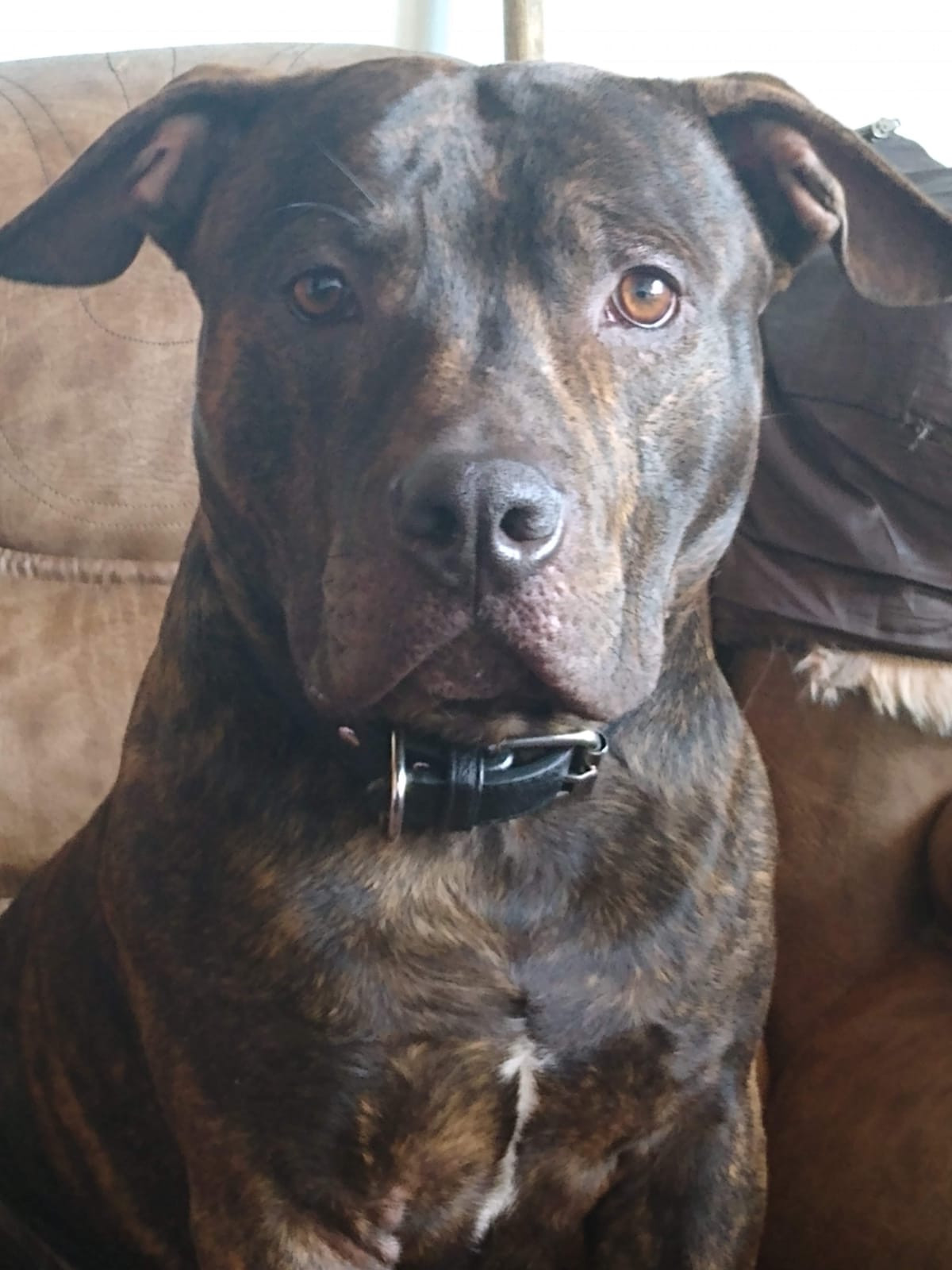✅ En el momento que se extravió tenía puesto un collar rojo con taches triangulares.