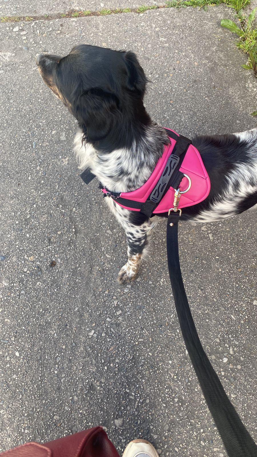 ✅ Cuando se perdió llevaba puesto un arnés color rosa fucsia.