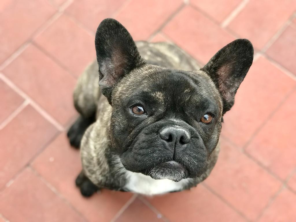 ✅ Es una perrita, hembra, de raza Bulldog Francés color Barcino, es adulta, es de tamaño pequeño y musculoso.