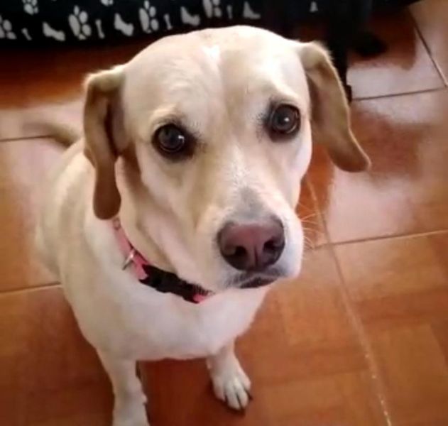 ✅ Es una perrita, criollita de labrador, es amarilla, su cola es larga, se caracteriza porque está muy gordita; Fue atropellada y salió corriendo asustada, debe estar golpeada o herida y necesita atención veterinaria urgente .
