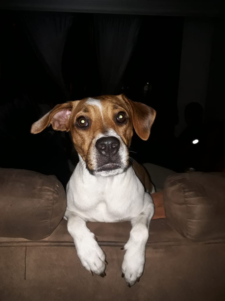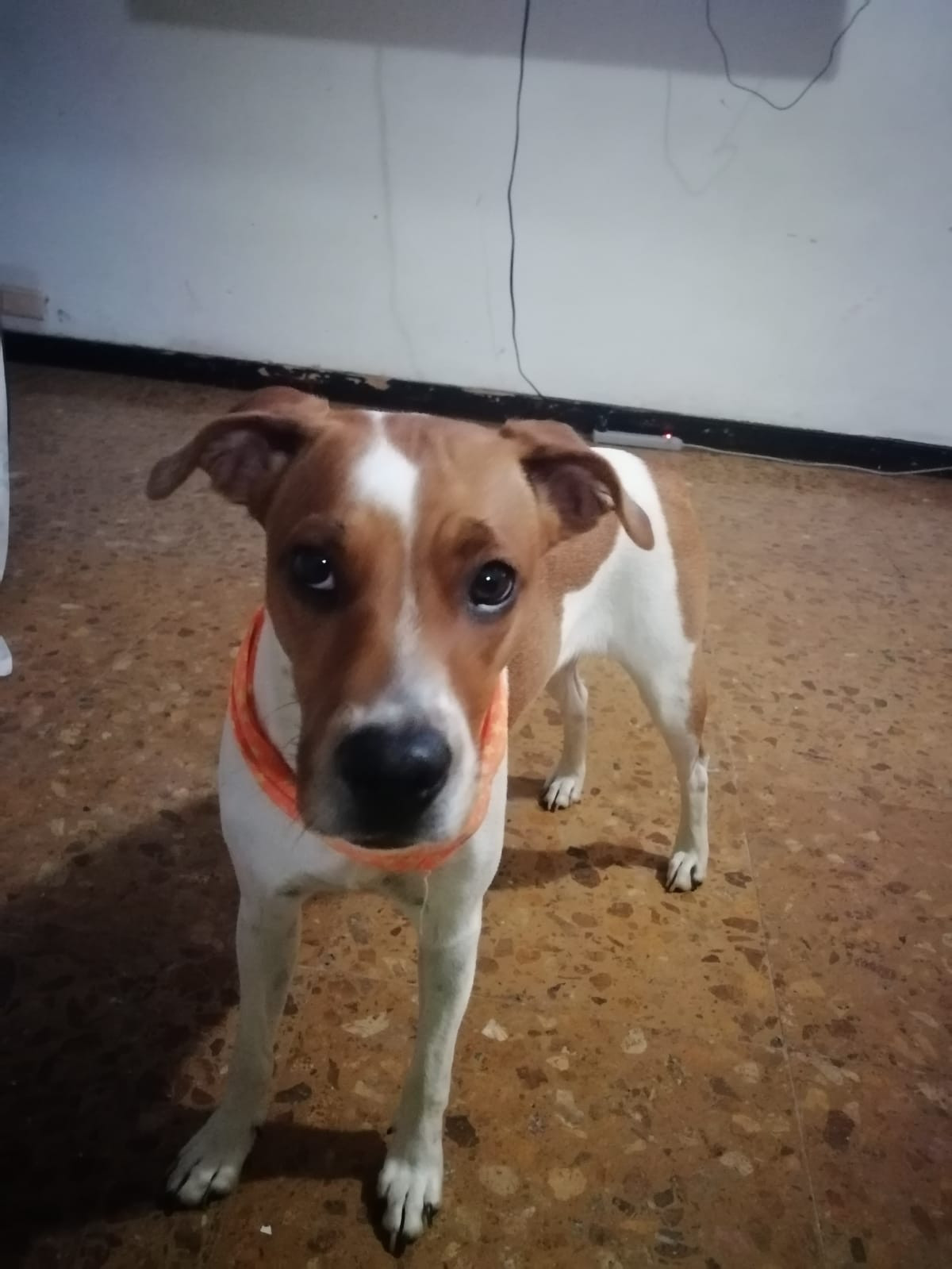 ✅ Es una perrita, hembra, de raza Jack Russell terrier, es de estatura mediana, de color café oscurito con manchas blancas. En su cabecita tiene una mancha muy característica.