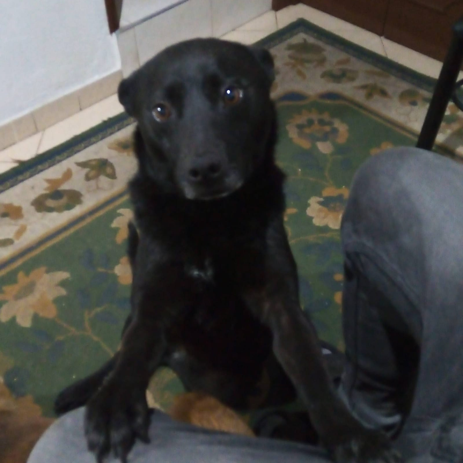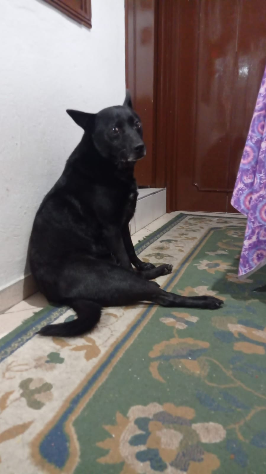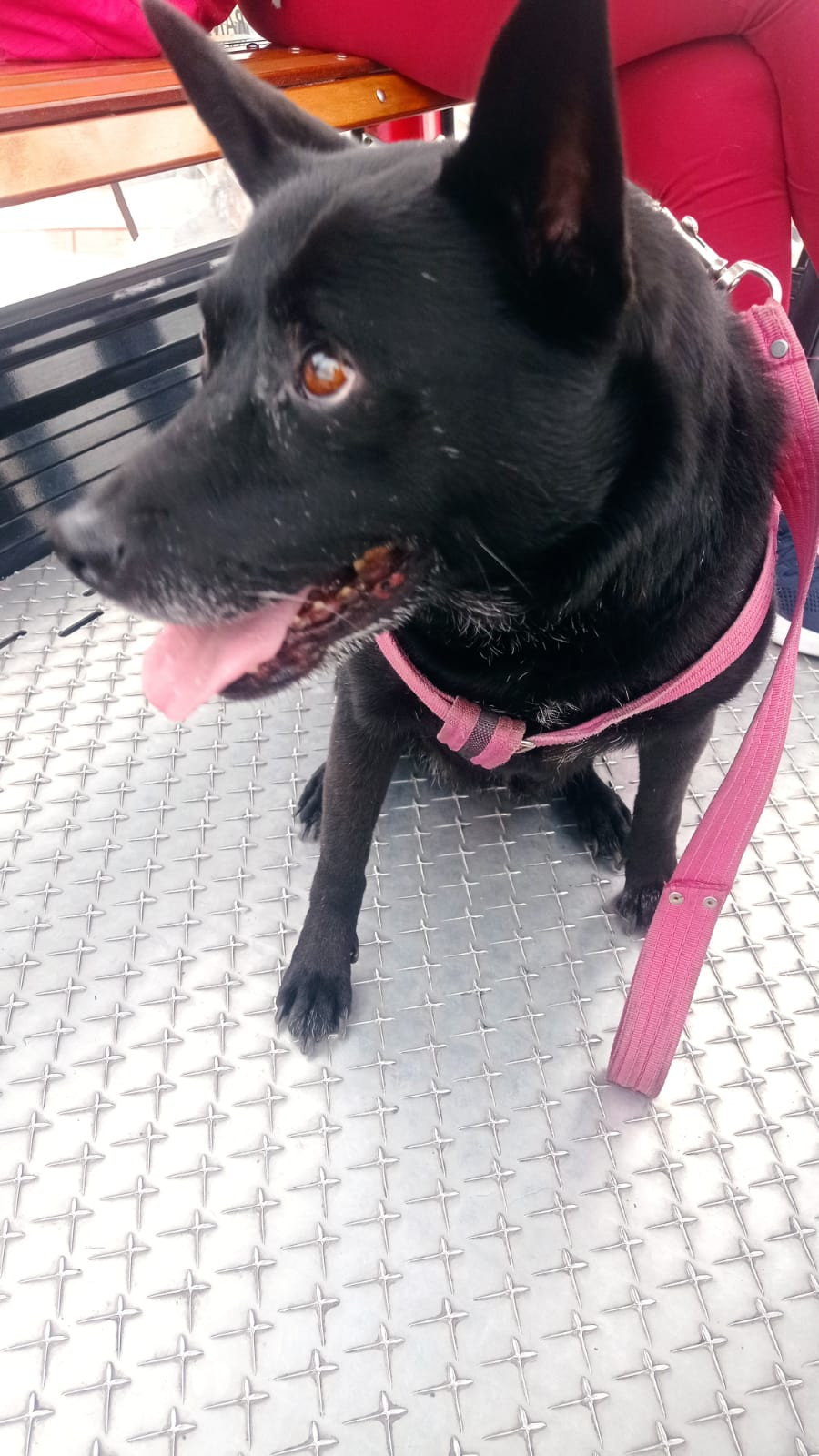 ✅ Es una perrita de color negro azabache está esterilizada, es robusta.