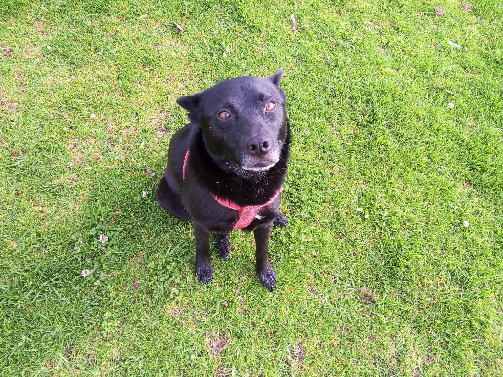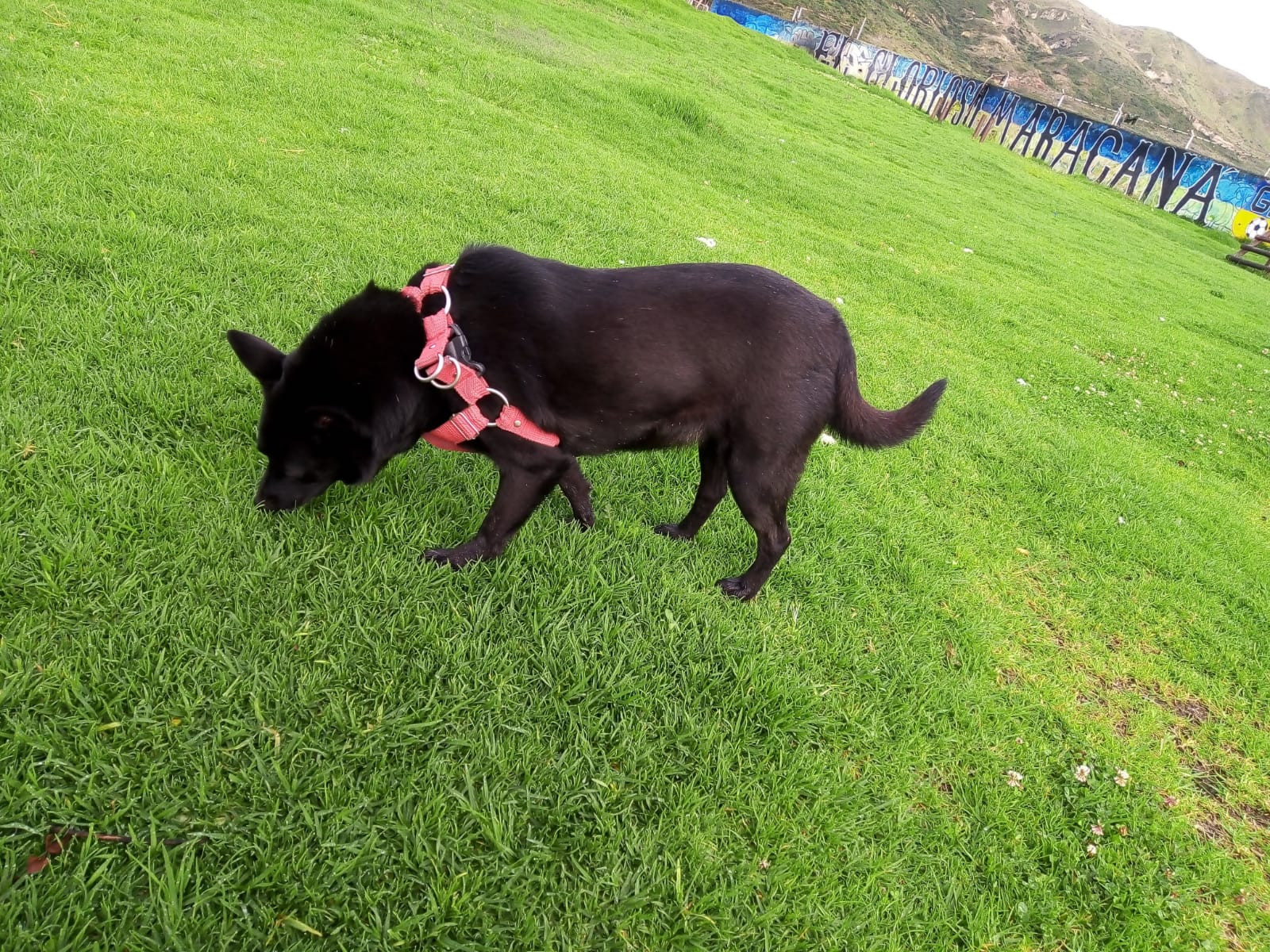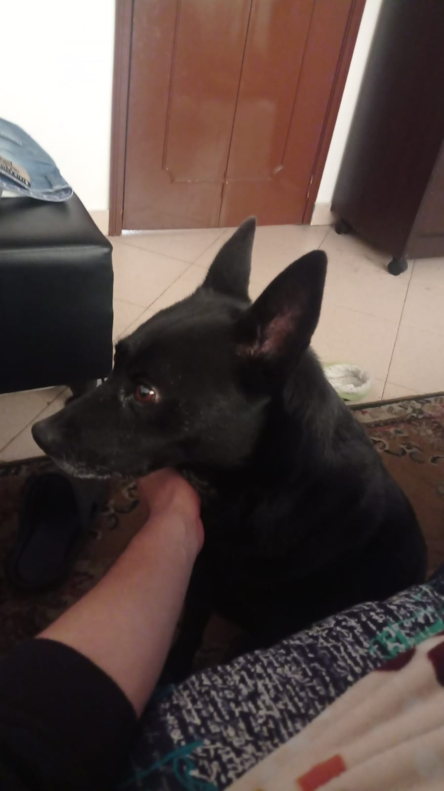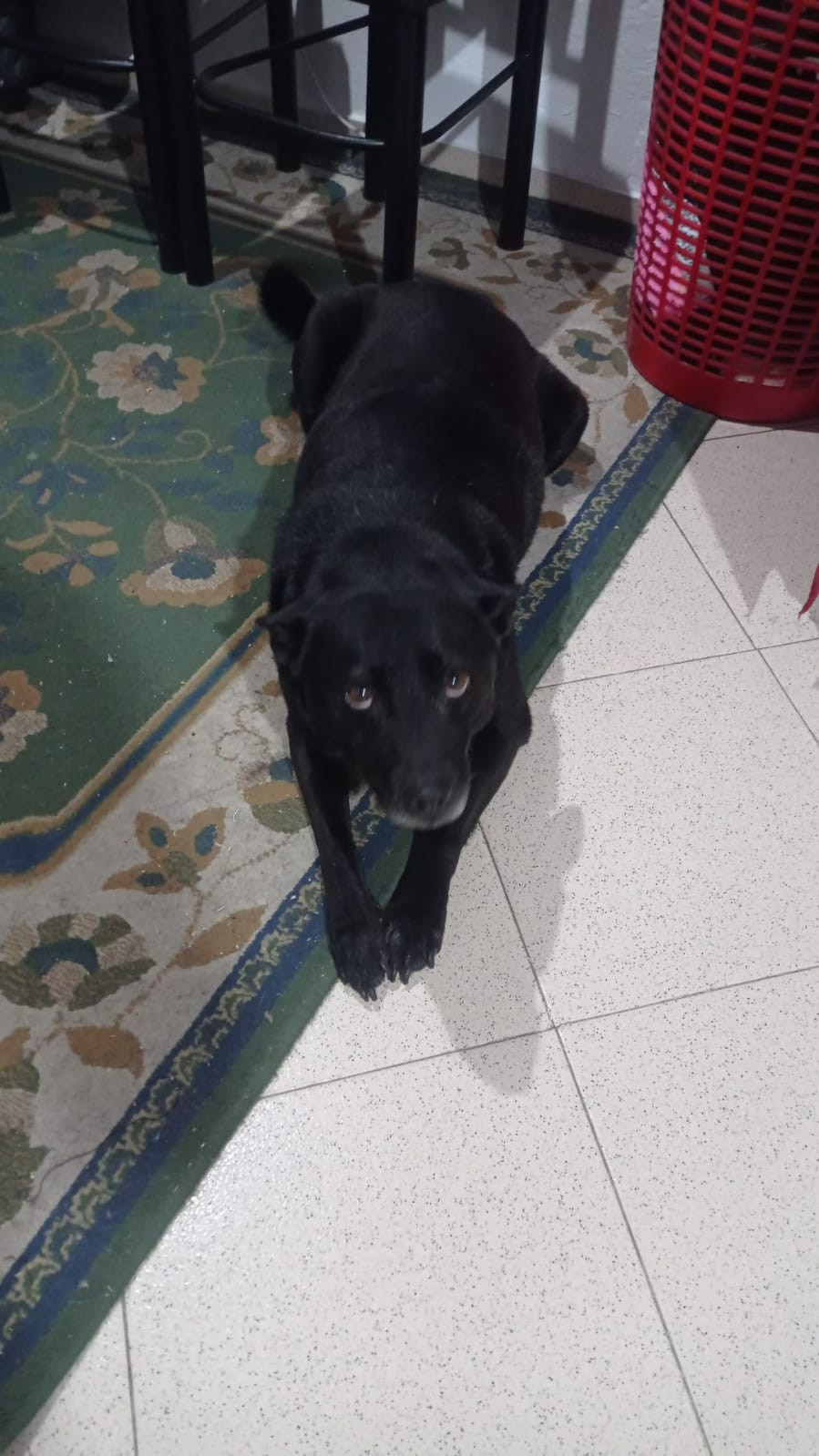 ✅ Es una perrita de color negro azabache está esterilizada, es robusta.