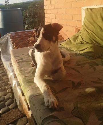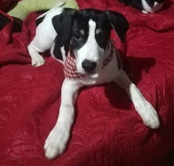 ✅ Es un perrito mediano, macho, es criollito. de color blanco con manchas negras, sus cejas con miel.