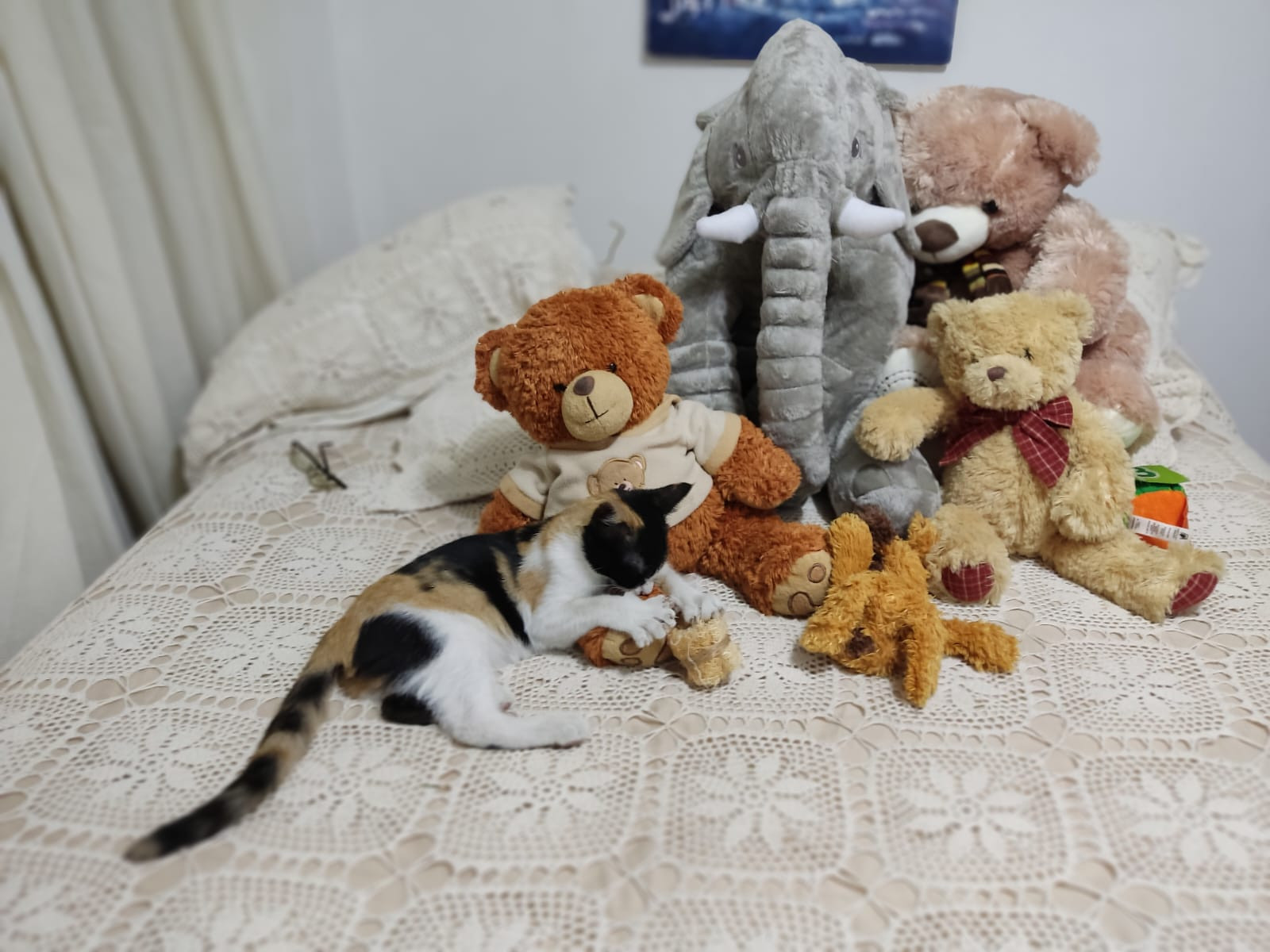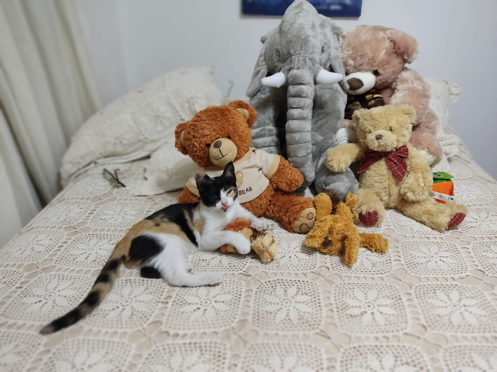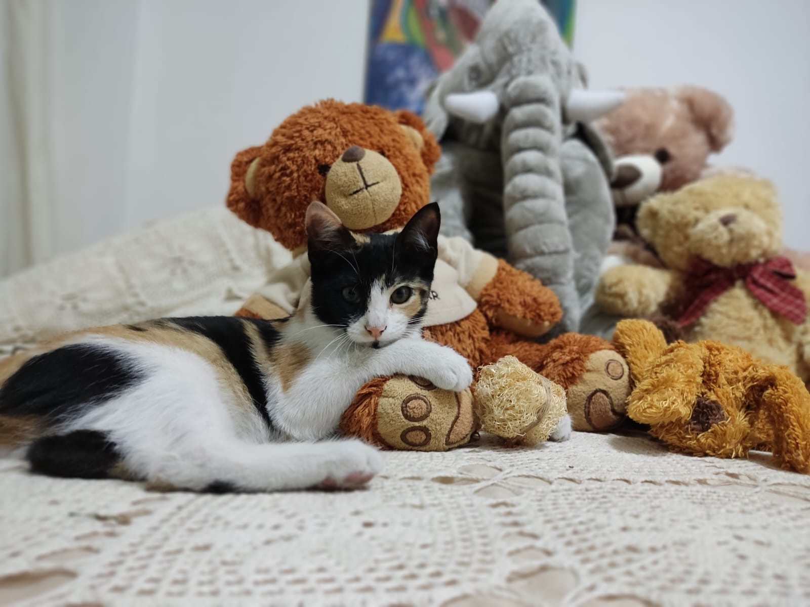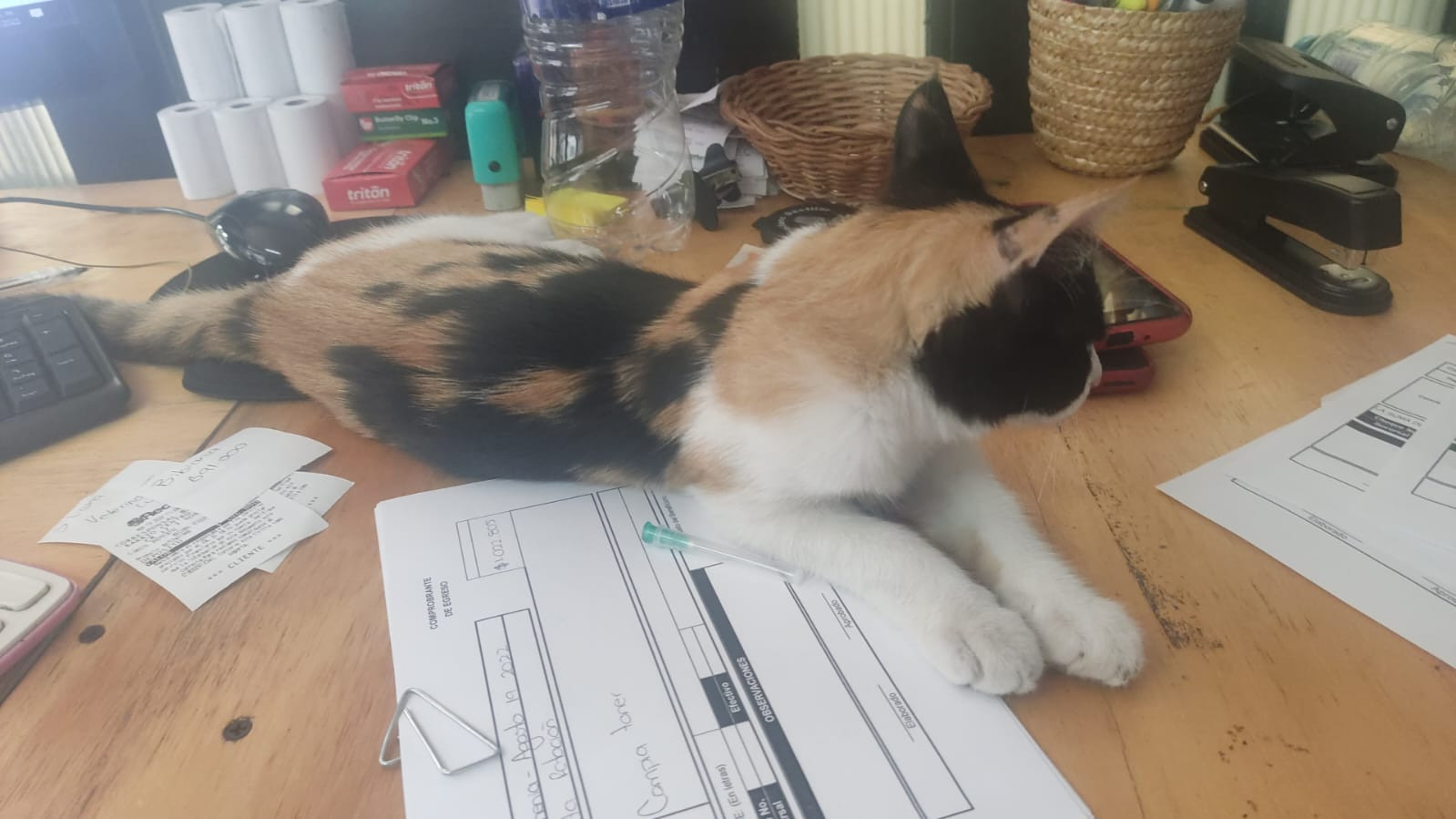 ✅ Es una gatica, hembra, es de tres colores: blanco, negro y amarillito.