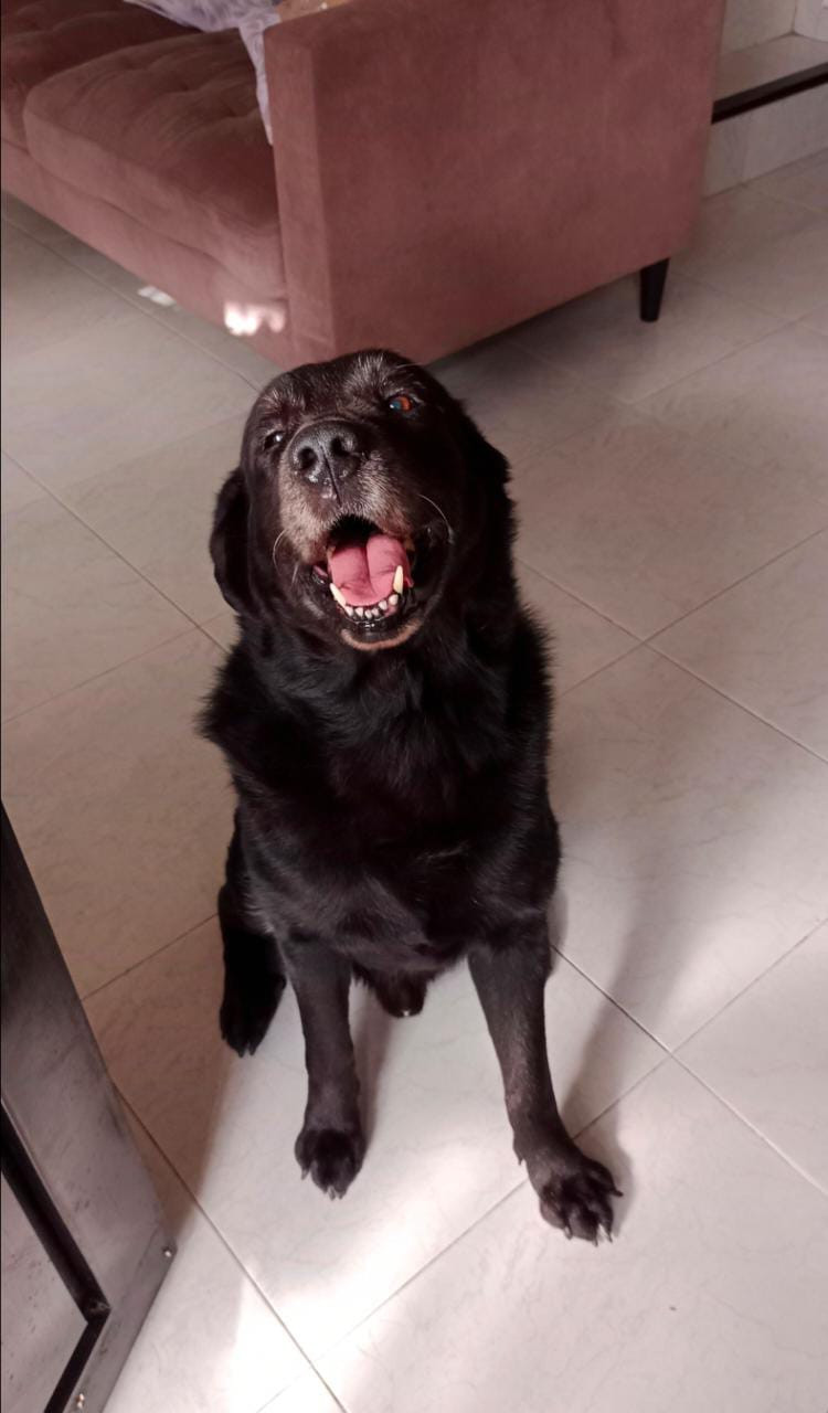 ✅ Es un perrito adulto de raza labrador negro, necesita medicamento urgente.