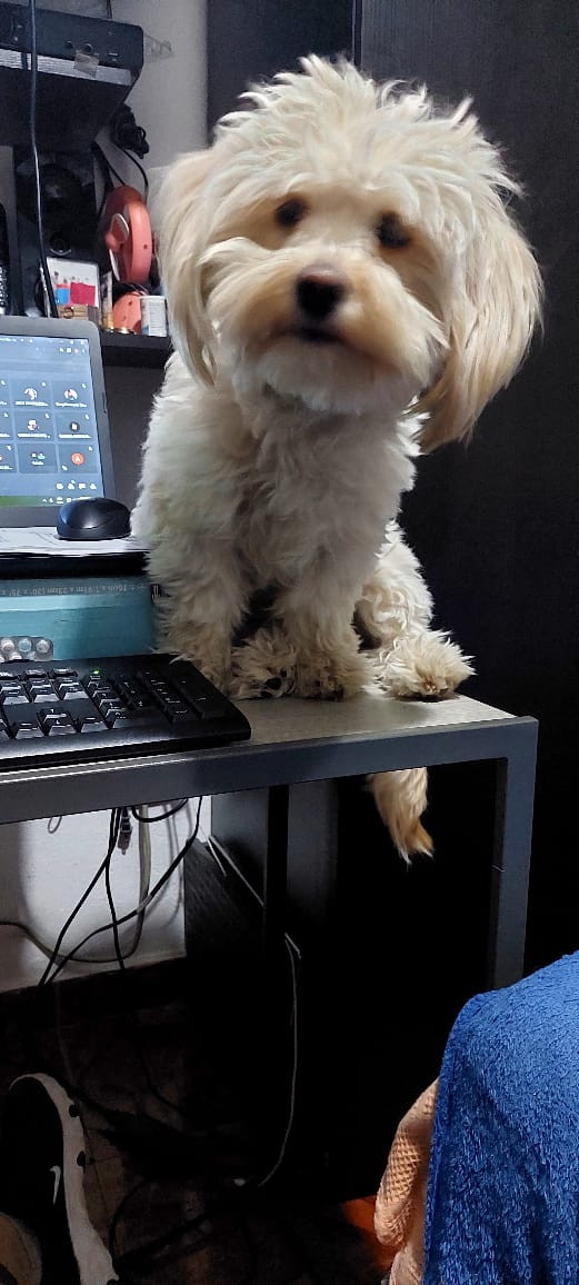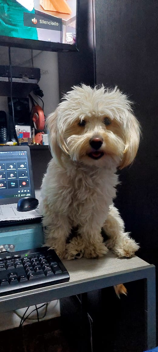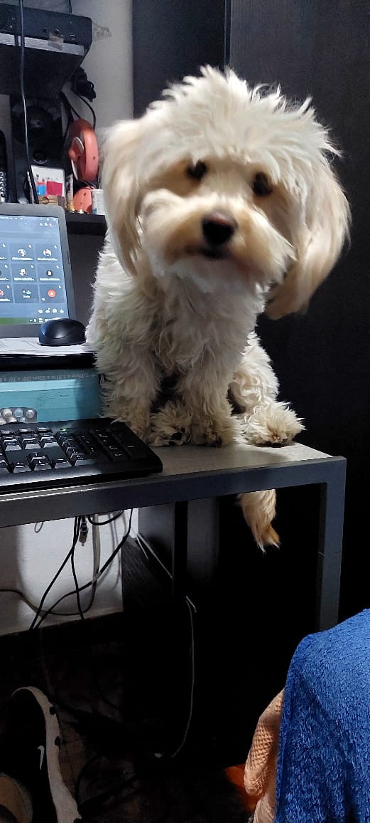 ✅ Nara es de raza pequeña, entre Blanca y destellos amarillos, cola larga mona, tiene un lunar en la lengua, tiene el cabello un poco ondulado, carita chata. La cola es más naranjita.