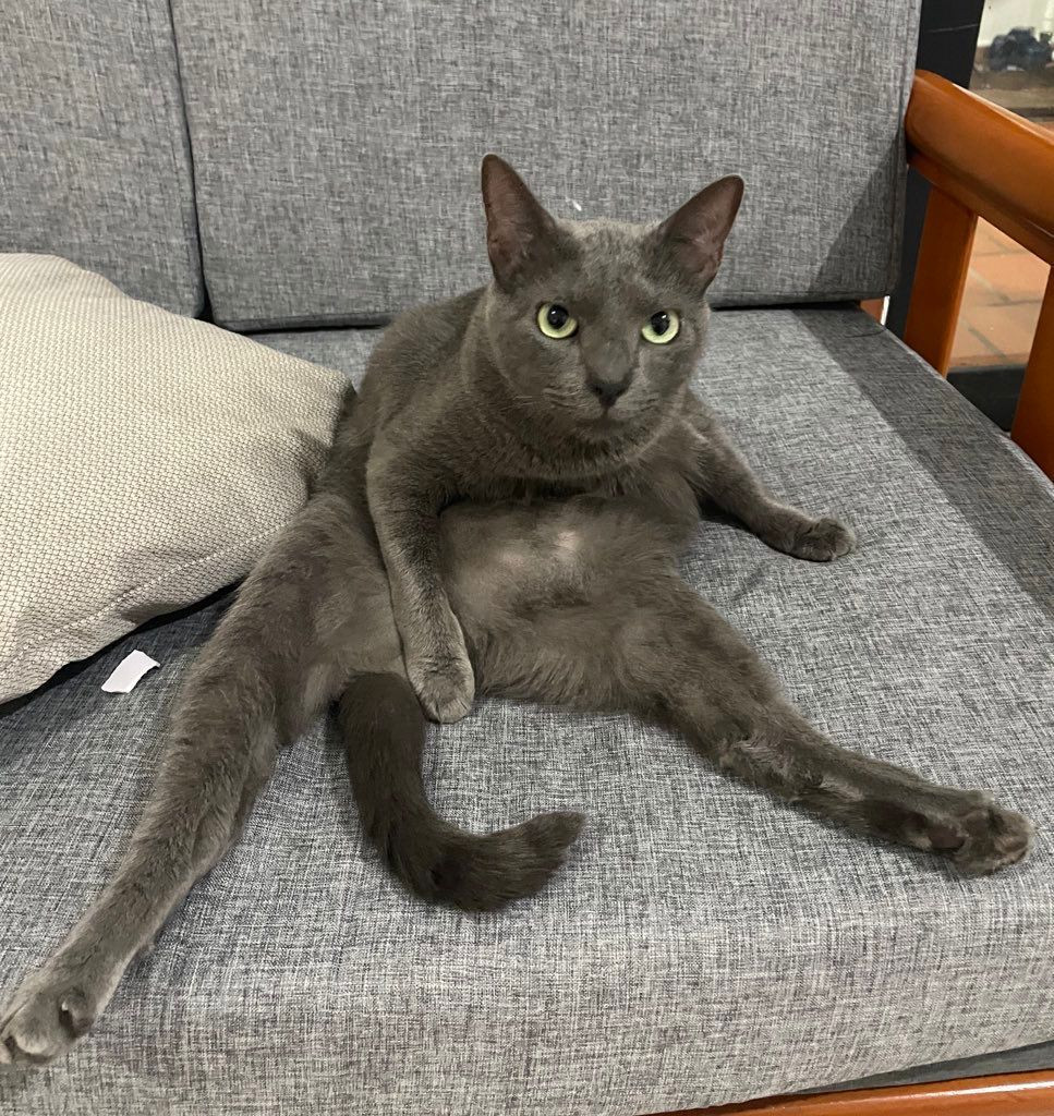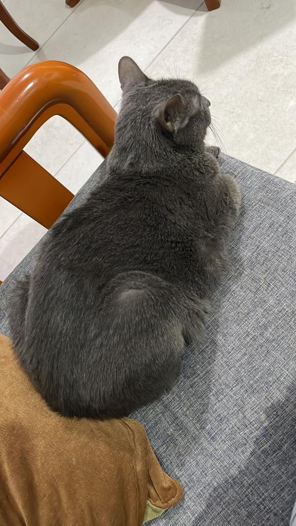 ✅ Pimienta es una gatita criolla color gris, pesa 5 kilos entonces está gordita, esta operada, tiene un colmillo inferior partido, tiene una fractura de nacimiento en la punta de la cola, y tiene como entraditas calvas, es peludita en la barriga.
