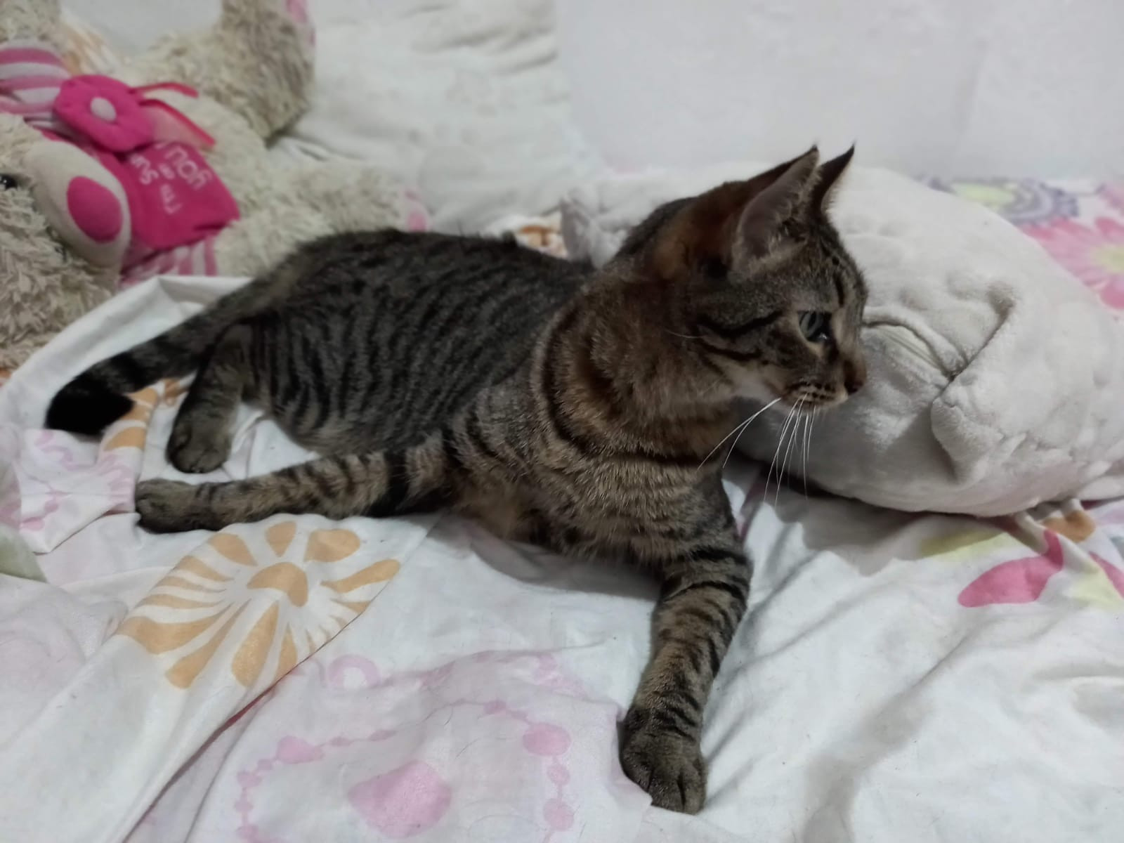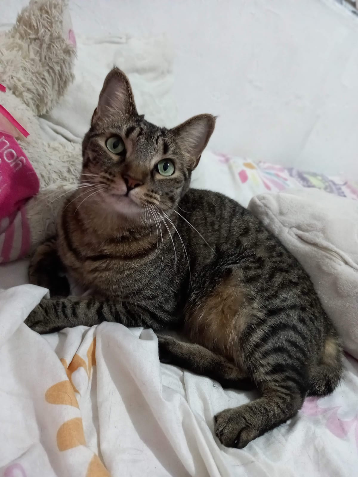 ✅ Coco es una gatita atigrada, maulla a las personas, es sociable y resulta miedosa con otros gatos.