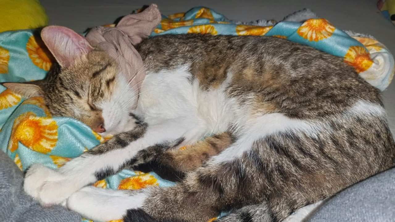 ✅ Es una gatica, hembra, criollita; tiene una herida en el cuello hacia la oreja derecha, no tiene pelo en la zona del cuello.