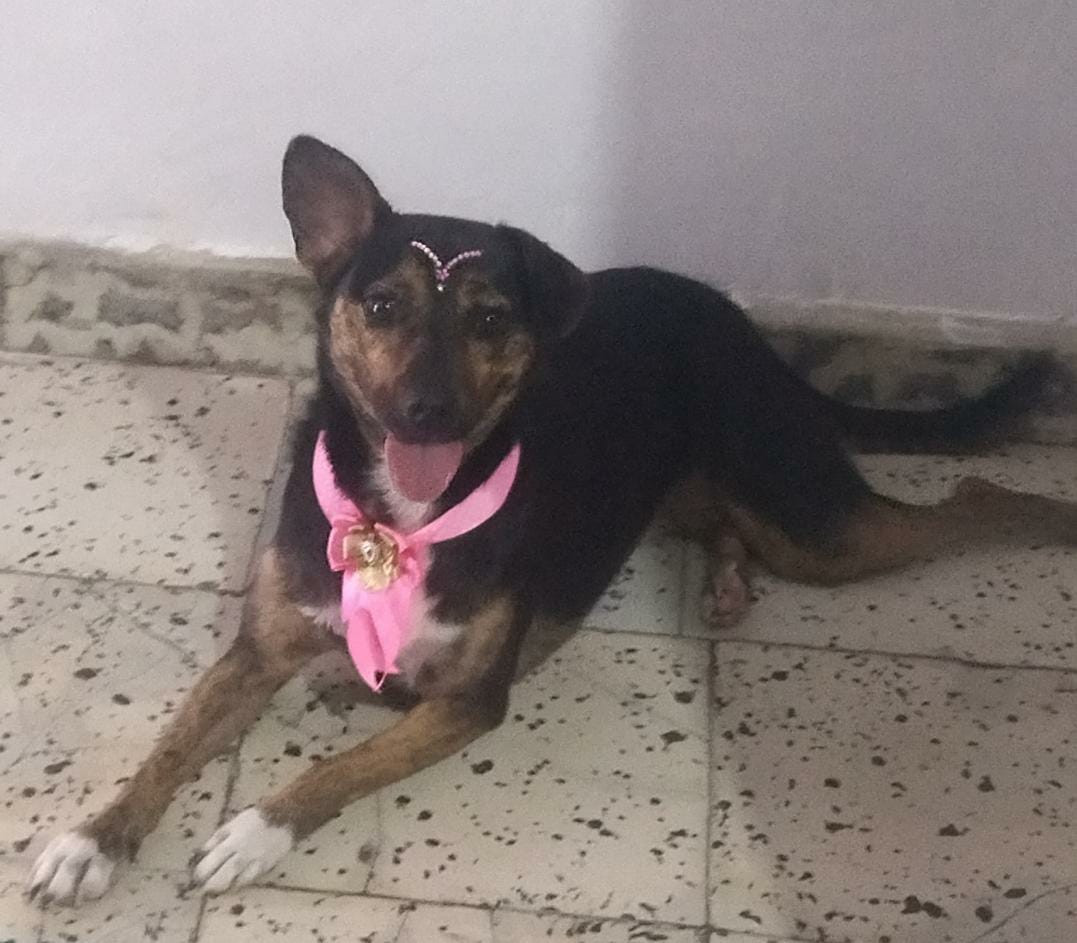 ✅ Cuando se perdió llevaba puesta una cinta de color rosa con moño y una cadenita.